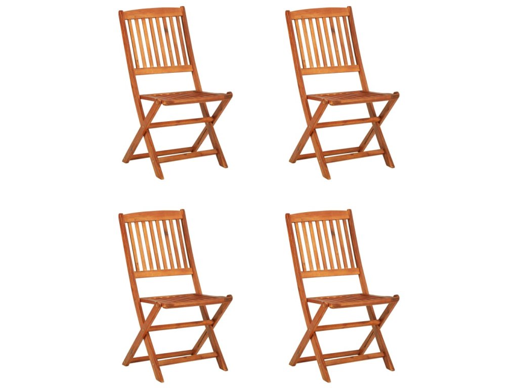 Venkovní jídelní set je vyrobený z masivní akácie, což je tropické tvrdé dřevo, které je odolné a výborně vzdoruje povětrnostním vlivům, takže vám vydrží sloužit po dlouhá léta. Olejovaný povrch se snadno čistí vlhkým hadříkem. Pokud terasové židle právě nepoužíváte, můžete je složit do kompaktní velikosti, aby vám zbytečně nepřekážely.