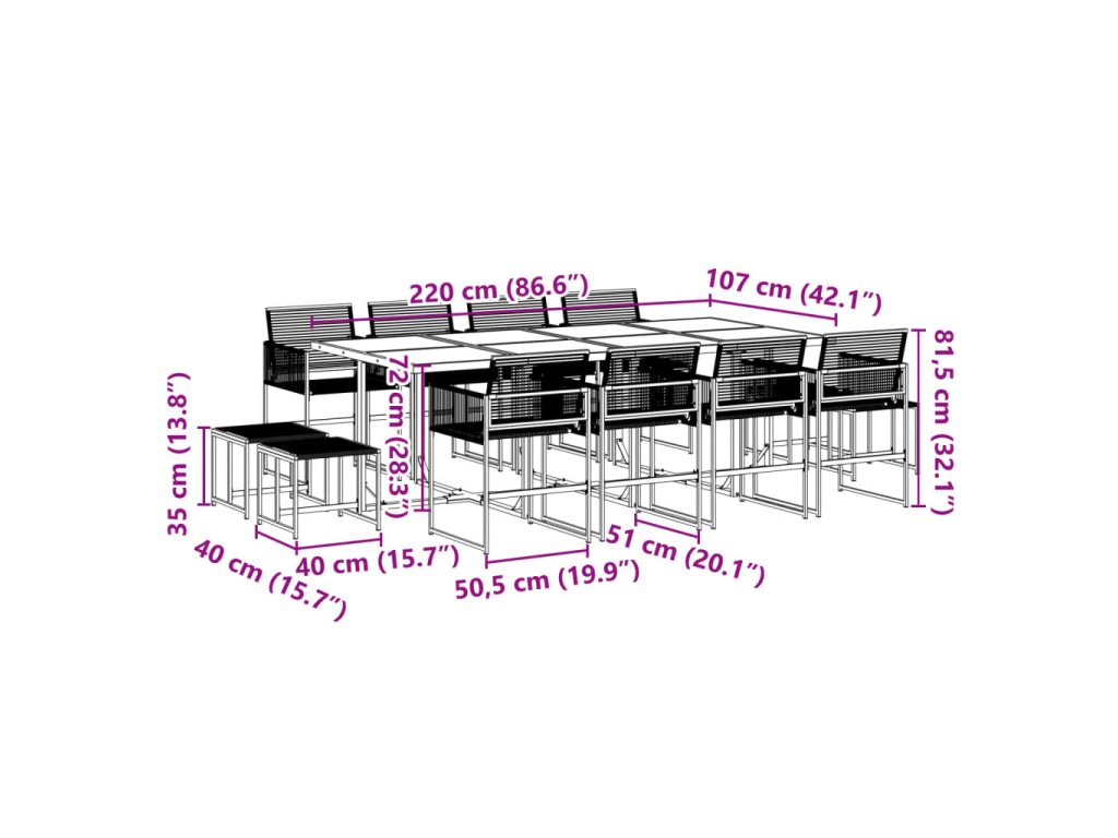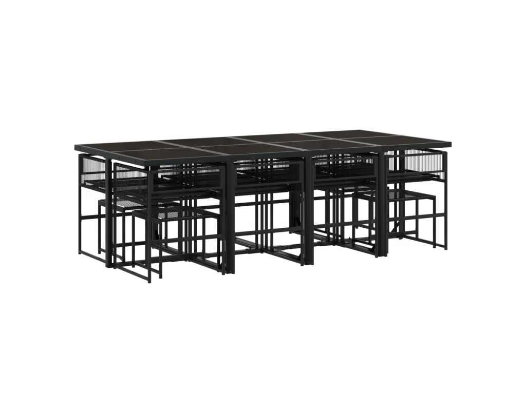 13dílný zahradní jídelní set černý polyratan 3295055
