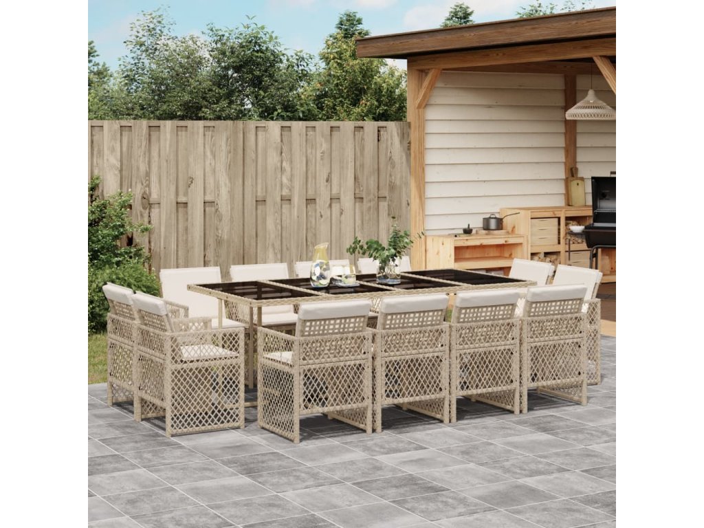 13dílný zahradní jídelní set s poduškami béžový polyratan 3210862