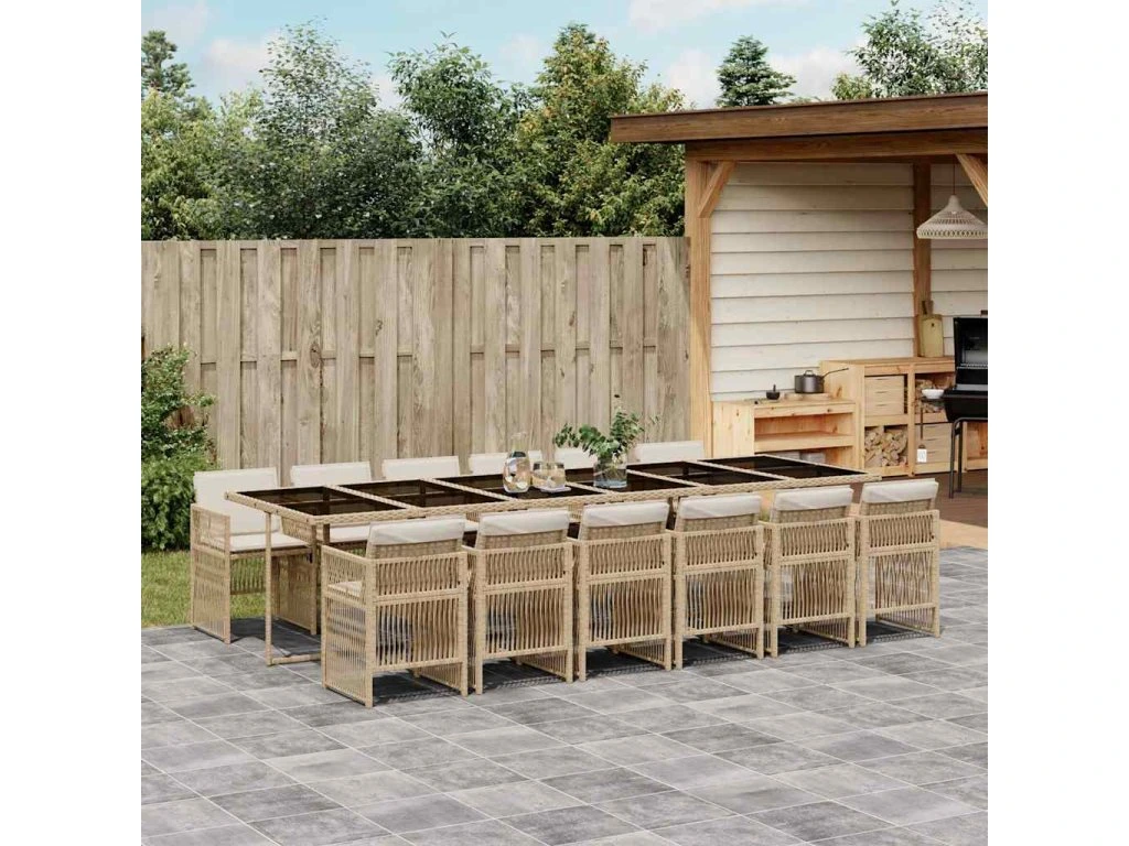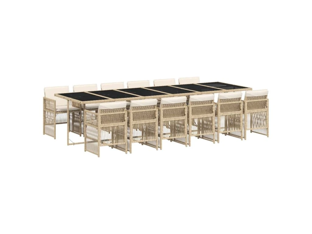 13dílný zahradní jídelní set s poduškami béžový polyratan 3210946