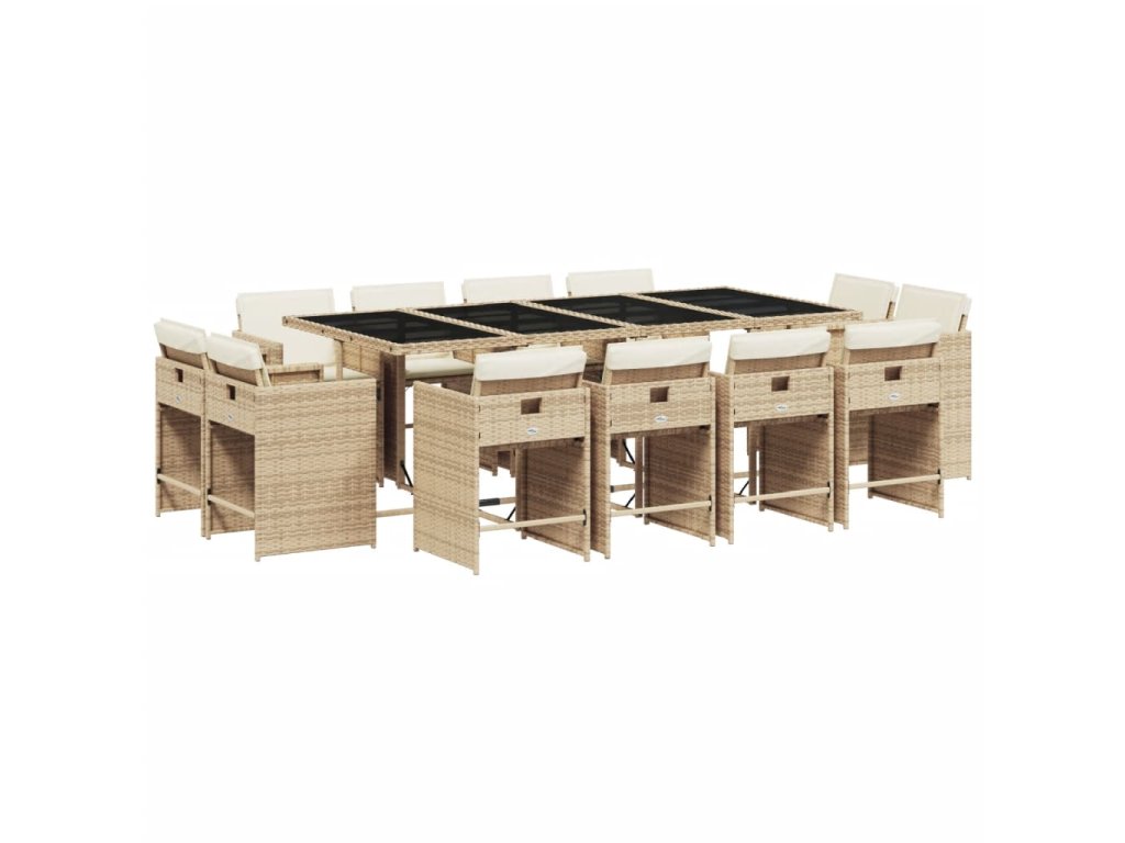 13dílný zahradní jídelní set s poduškami béžový polyratan 3277989