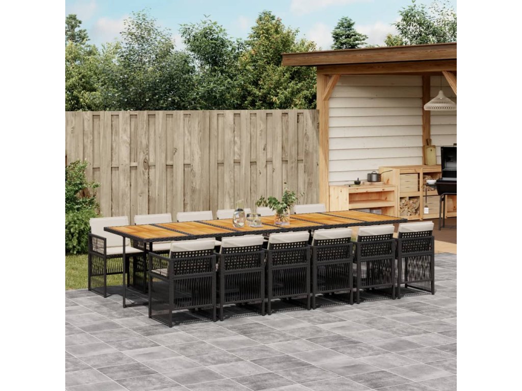 13dílný zahradní jídelní set s poduškami černý polyratan 3210951