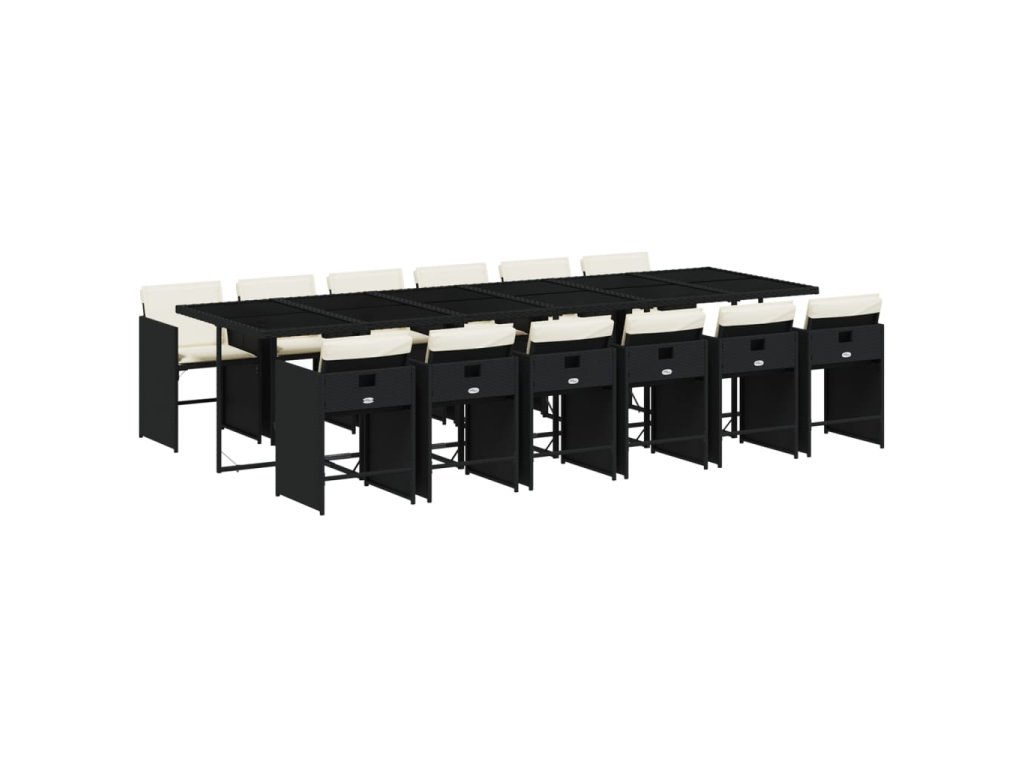 13dílný zahradní jídelní set s poduškami černý polyratan 3211122