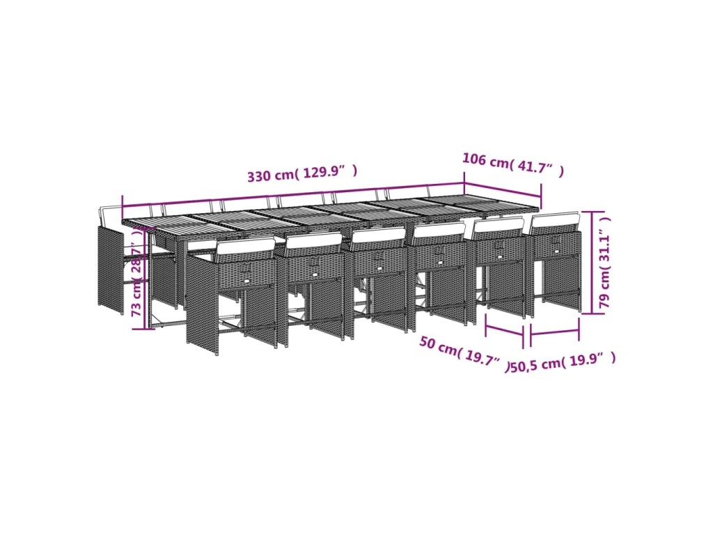 13dílný zahradní jídelní set s poduškami černý polyratan 3211131