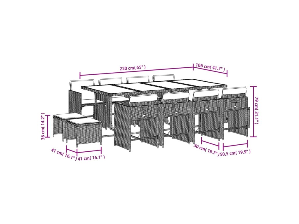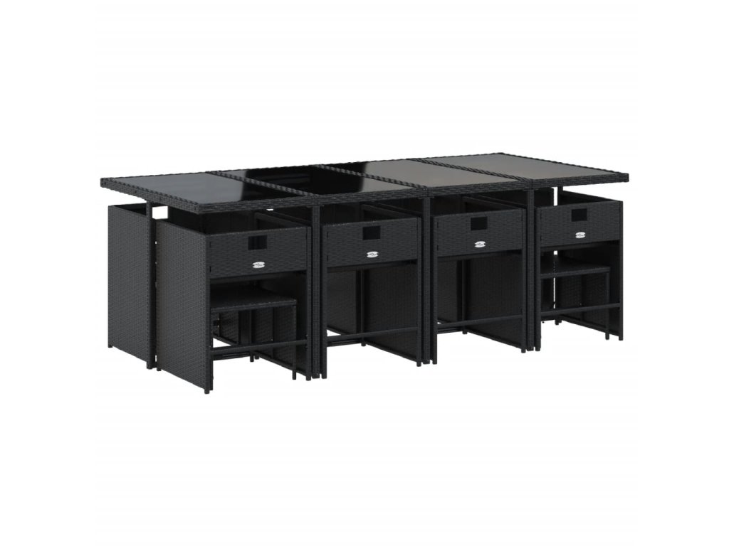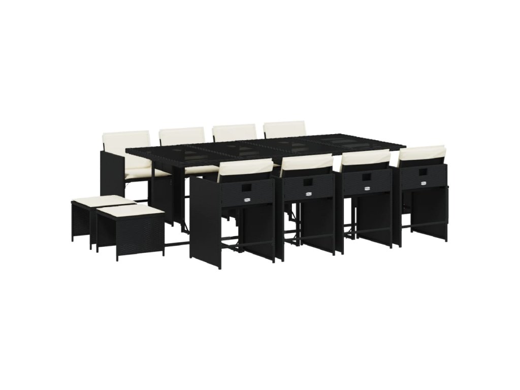 13dílný zahradní jídelní set s poduškami černý polyratan 3211158