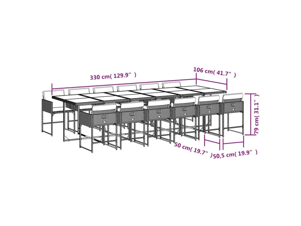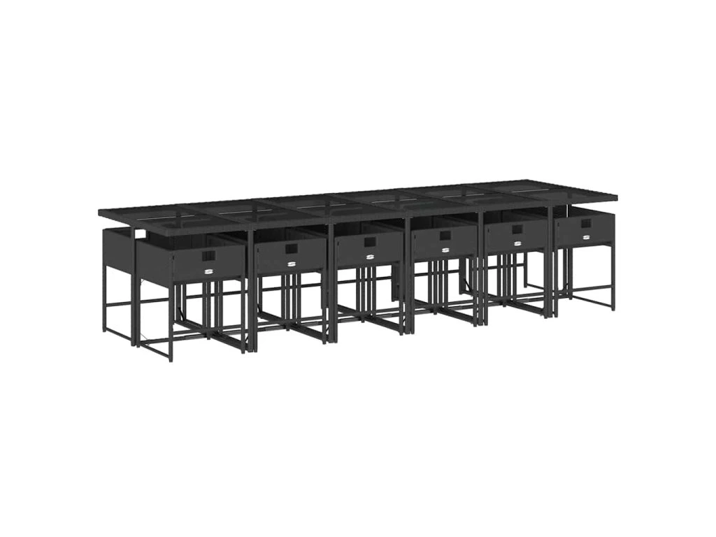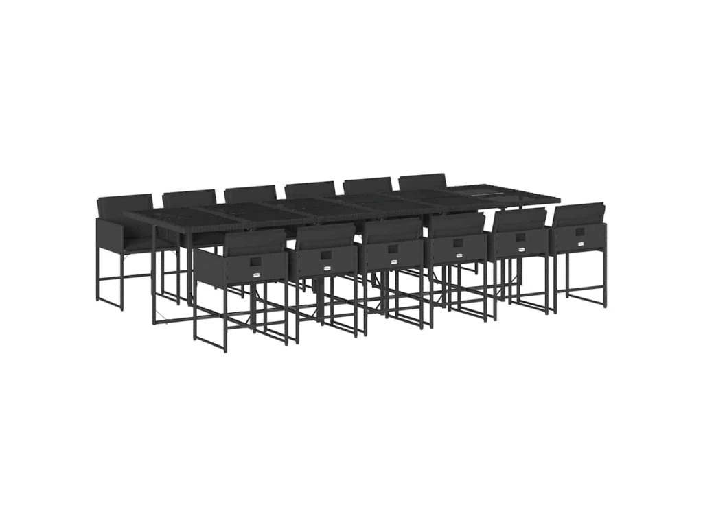 13dílný zahradní jídelní set s poduškami černý polyratan 3211303