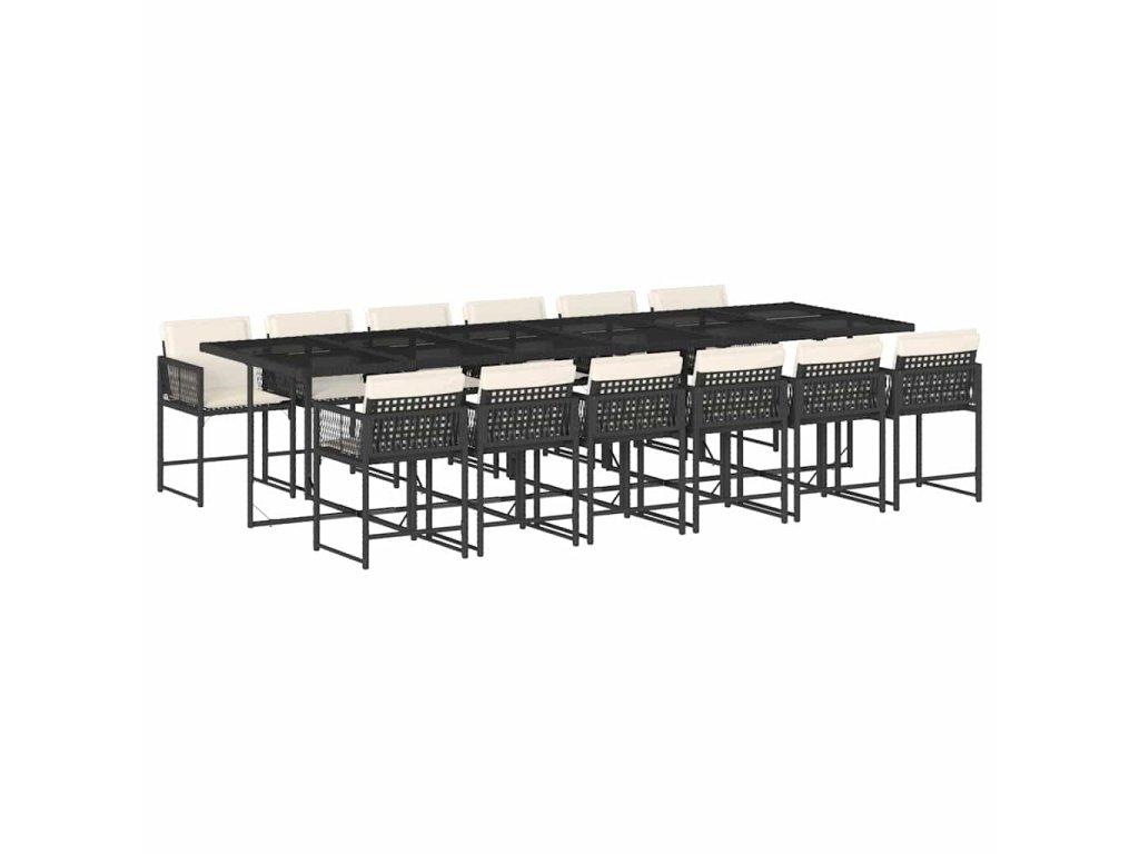 13dílný zahradní jídelní set s poduškami černý polyratan 3211482
