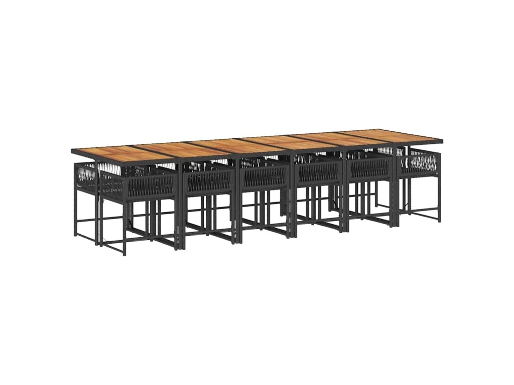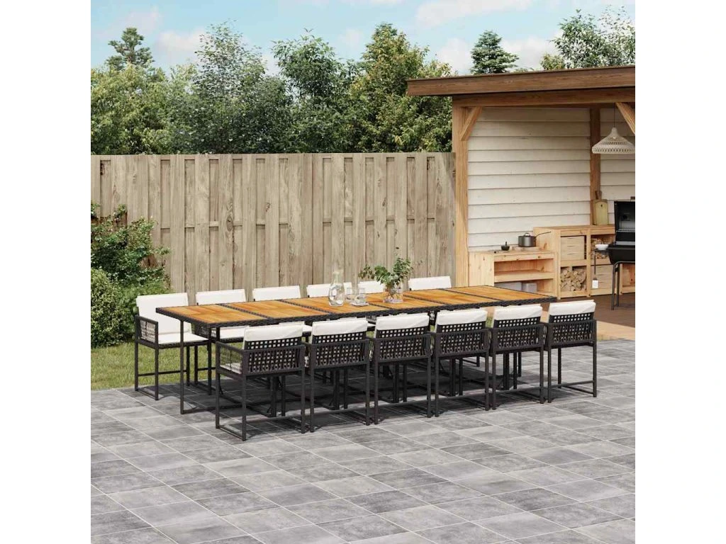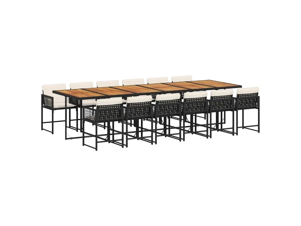 13dílný zahradní jídelní set s poduškami černý polyratan 3211491