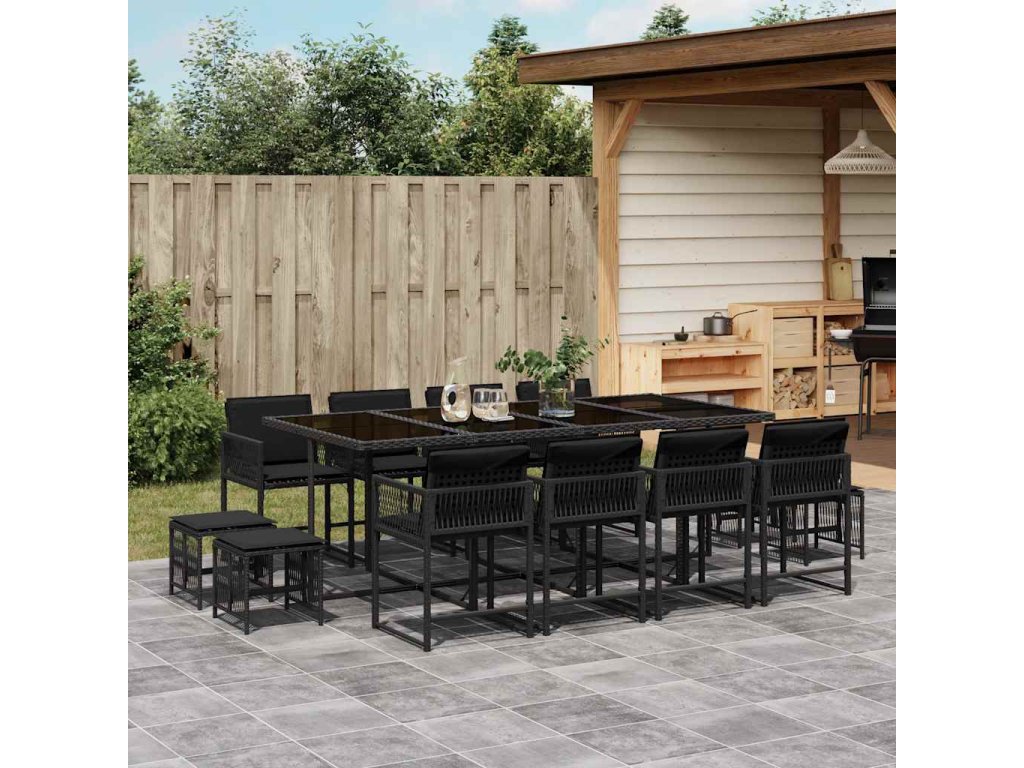 13dílný zahradní jídelní set s poduškami černý polyratan 3211519