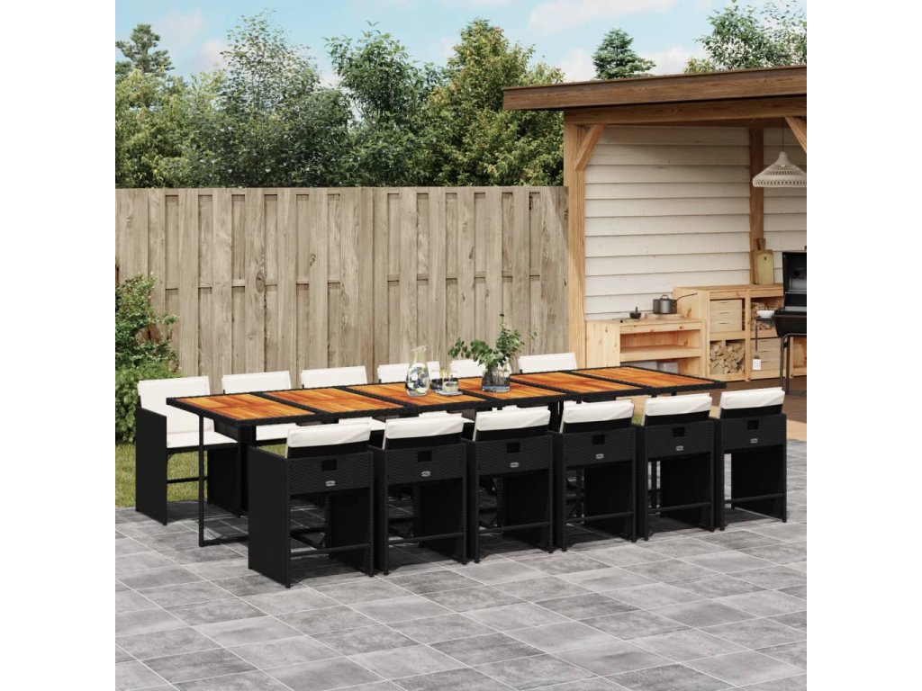 13dílný zahradní jídelní set s poduškami černý polyratan 3277898