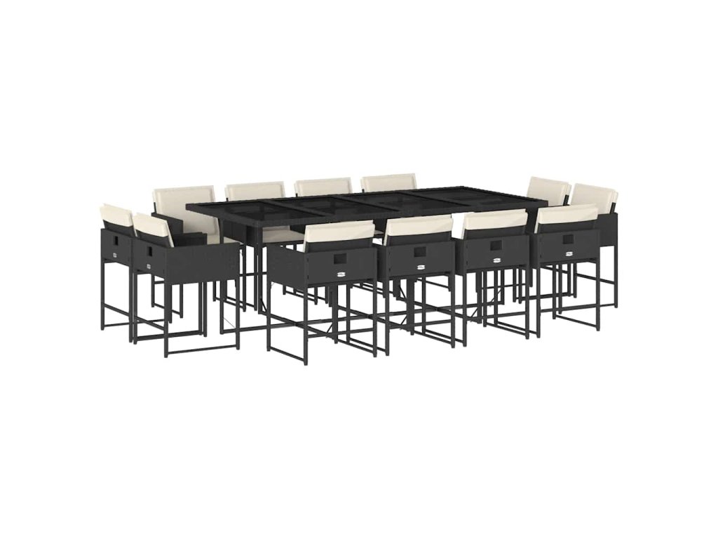 13dílný zahradní jídelní set s poduškami černý polyratan 3278165