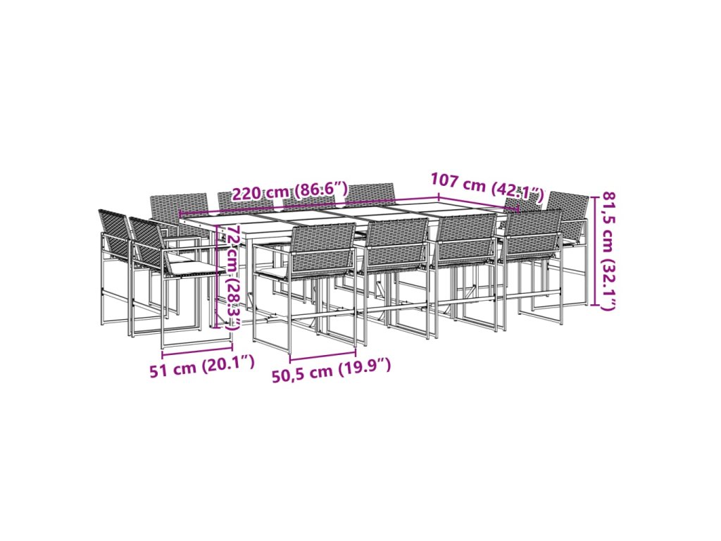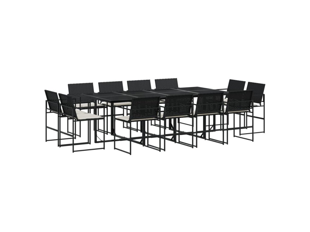 13dílný zahradní jídelní set s poduškami černý polyratan 3295065
