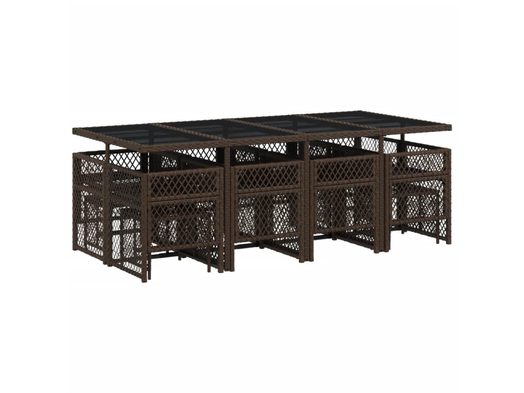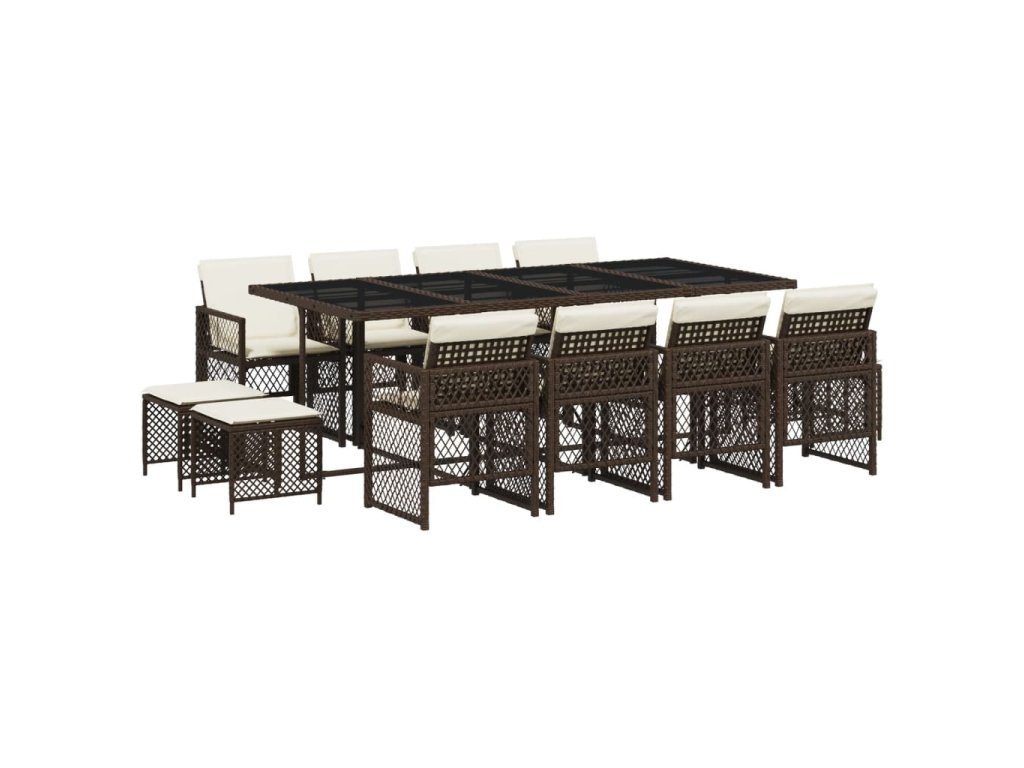 13dílný zahradní jídelní set s poduškami hnědý polyratan 3210801