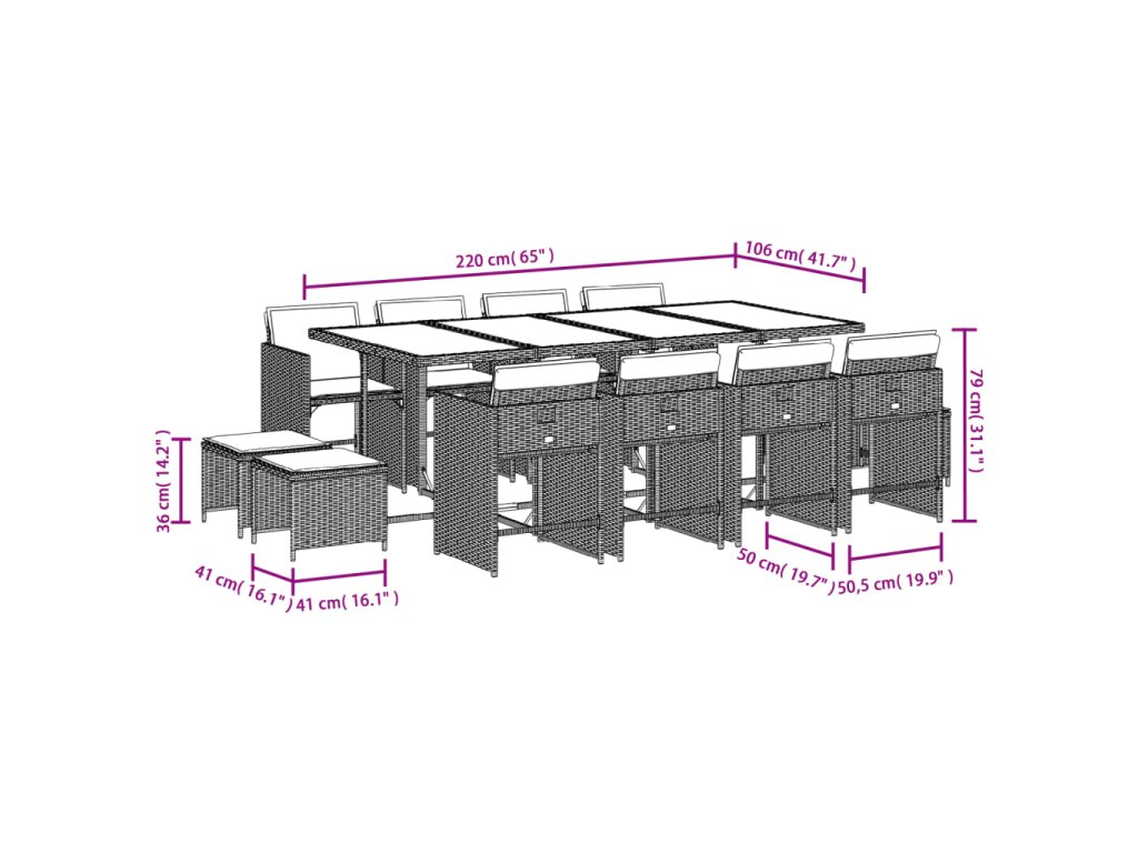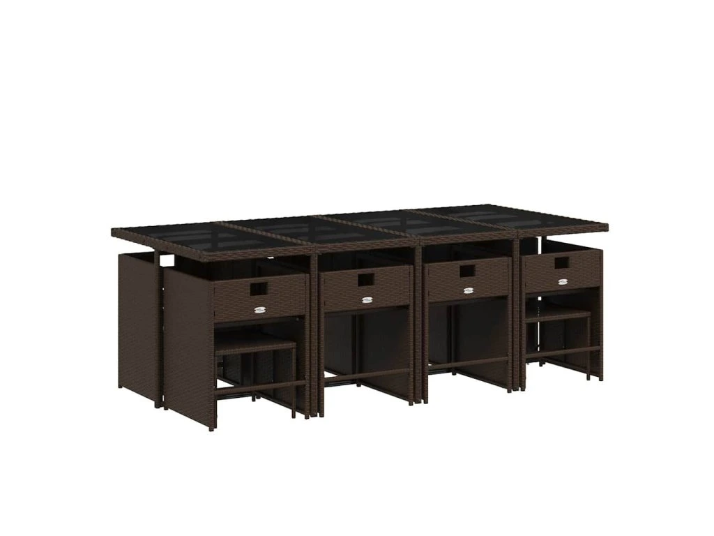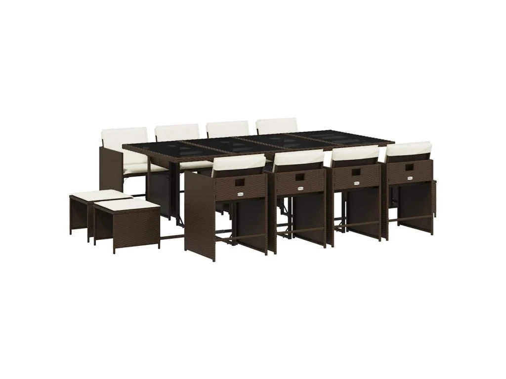 13dílný zahradní jídelní set s poduškami hnědý polyratan 3211161