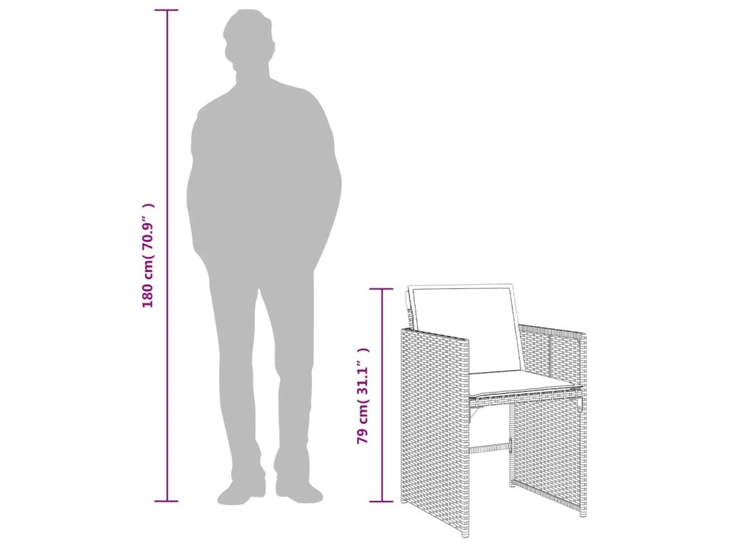 - Odolný materiál: PE ratan neboli polyratan je pevný syntetický materiál s nízkými nároky na údržbu, který vypadá jako přírodní ratan. Je lehký, snadno se čistí a běžně se používá pro venkovní nábytek díky své dlouhé životnosti a odolnosti vůči povětrnostním vlivům.