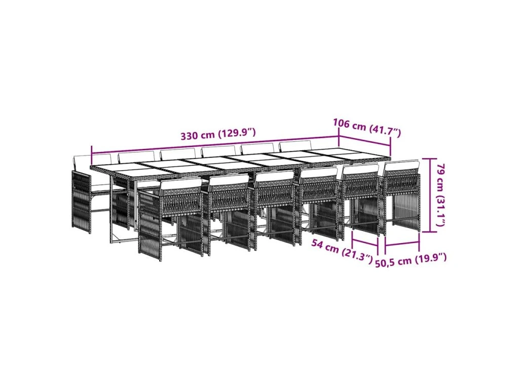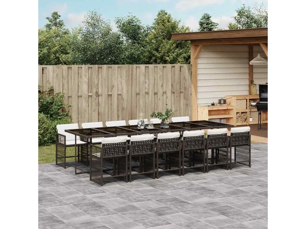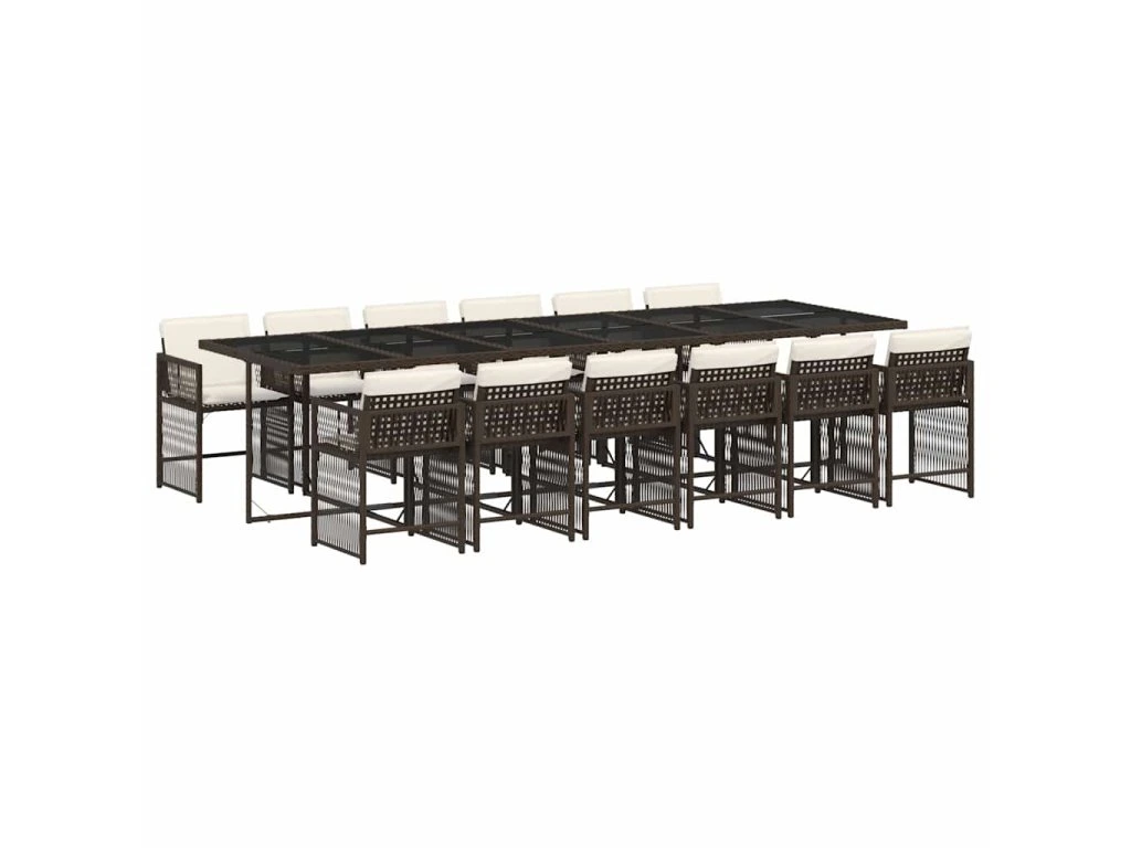 13dílný zahradní jídelní set s poduškami hnědý polyratan 3211665
