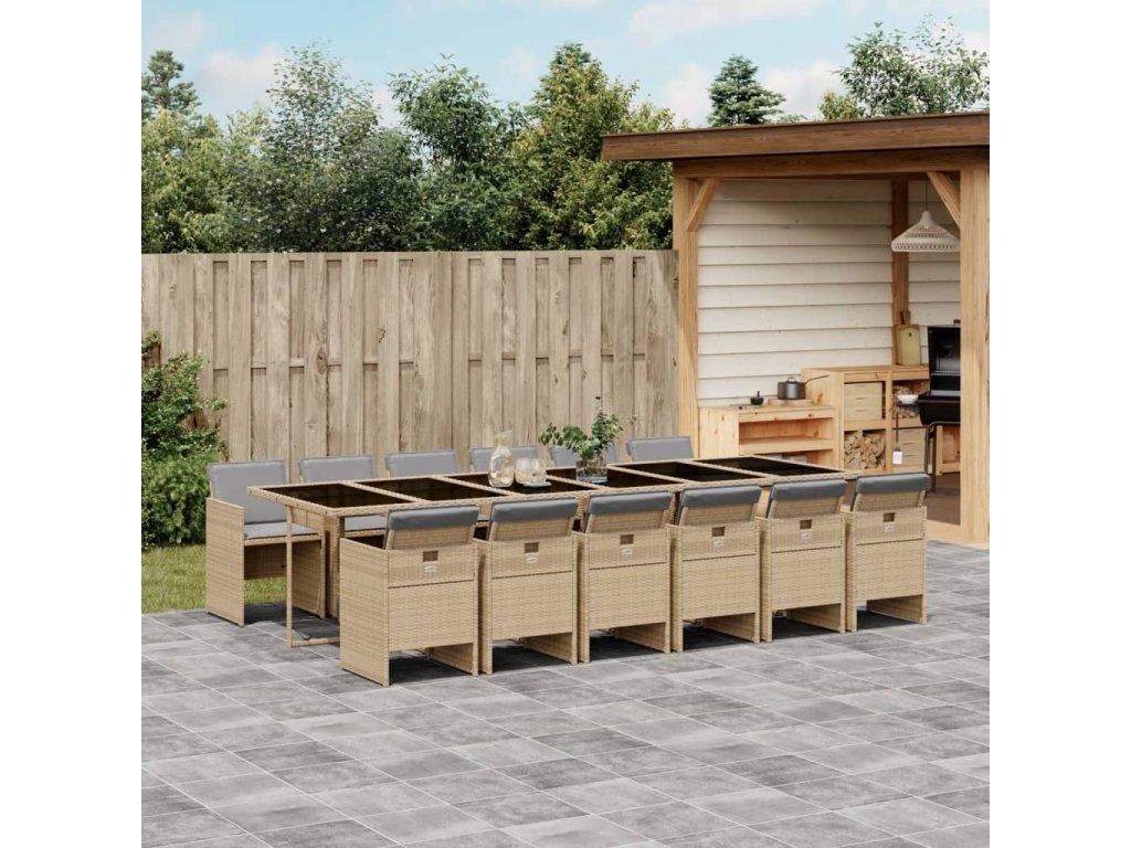 13dílný zahradní jídelní set s poduškami mix béžové polyratan 3210588