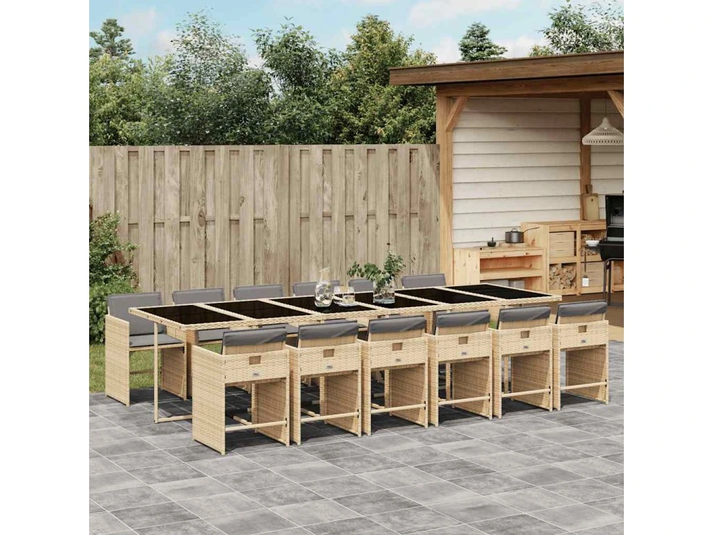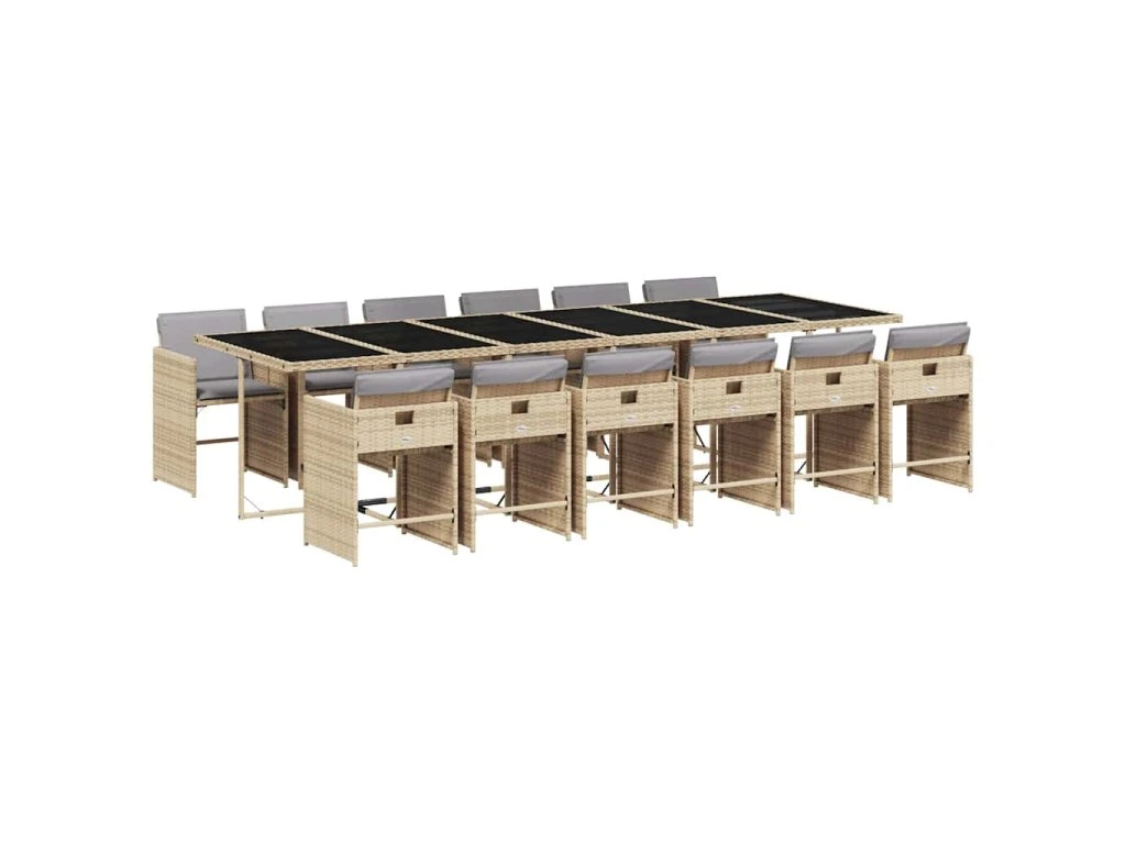 13dílný zahradní jídelní set s poduškami mix béžové polyratan 3211128