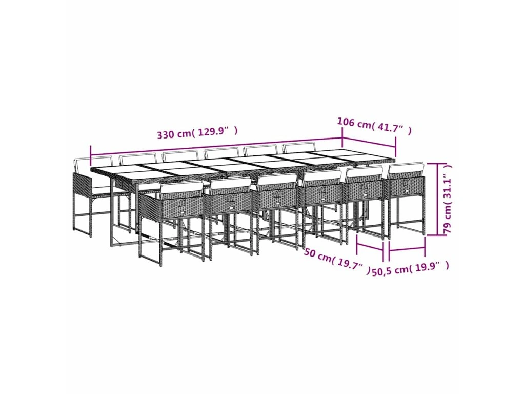 13dílný zahradní jídelní set s poduškami mix béžové polyratan 3211308