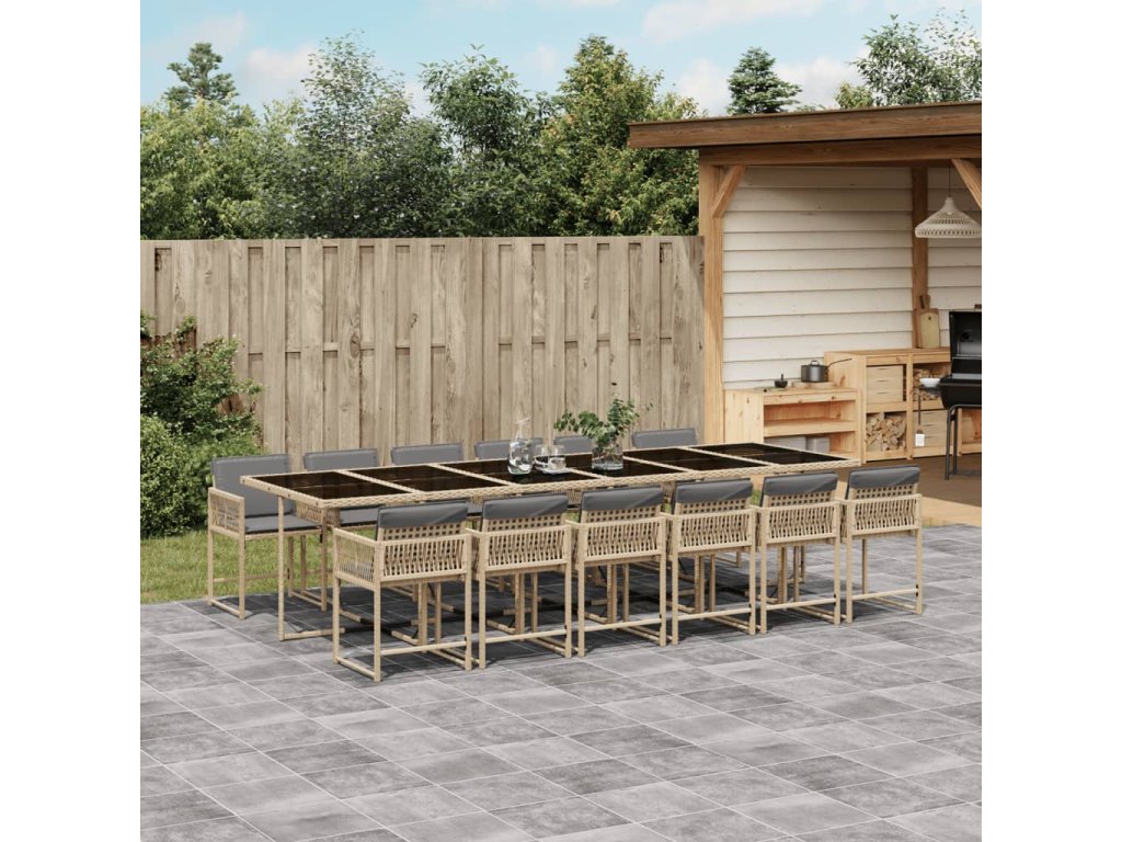 13dílný zahradní jídelní set s poduškami mix béžové polyratan 3211488