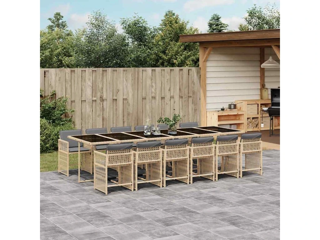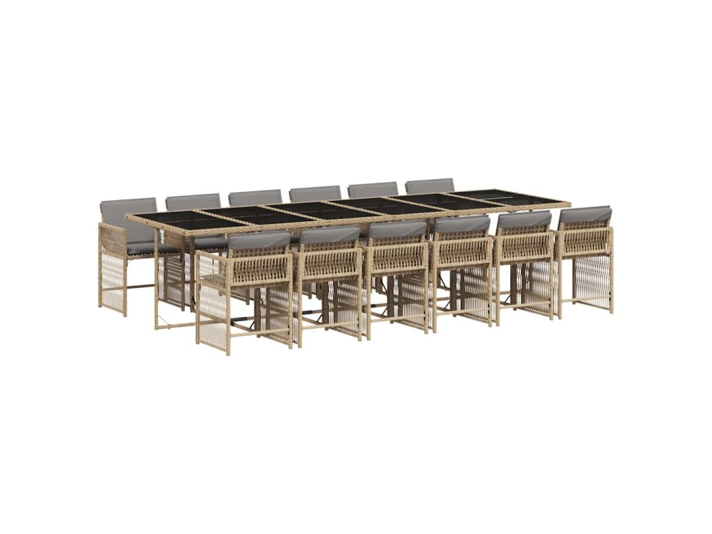 13dílný zahradní jídelní set s poduškami mix béžové polyratan 3211668