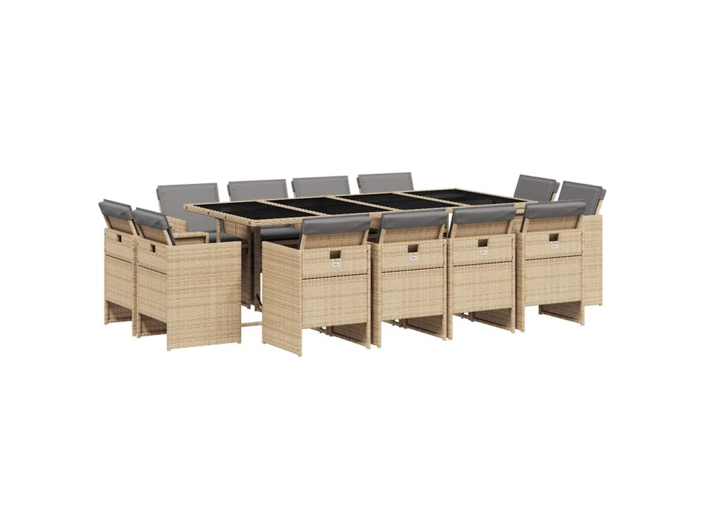 13dílný zahradní jídelní set s poduškami mix béžové polyratan 3277811