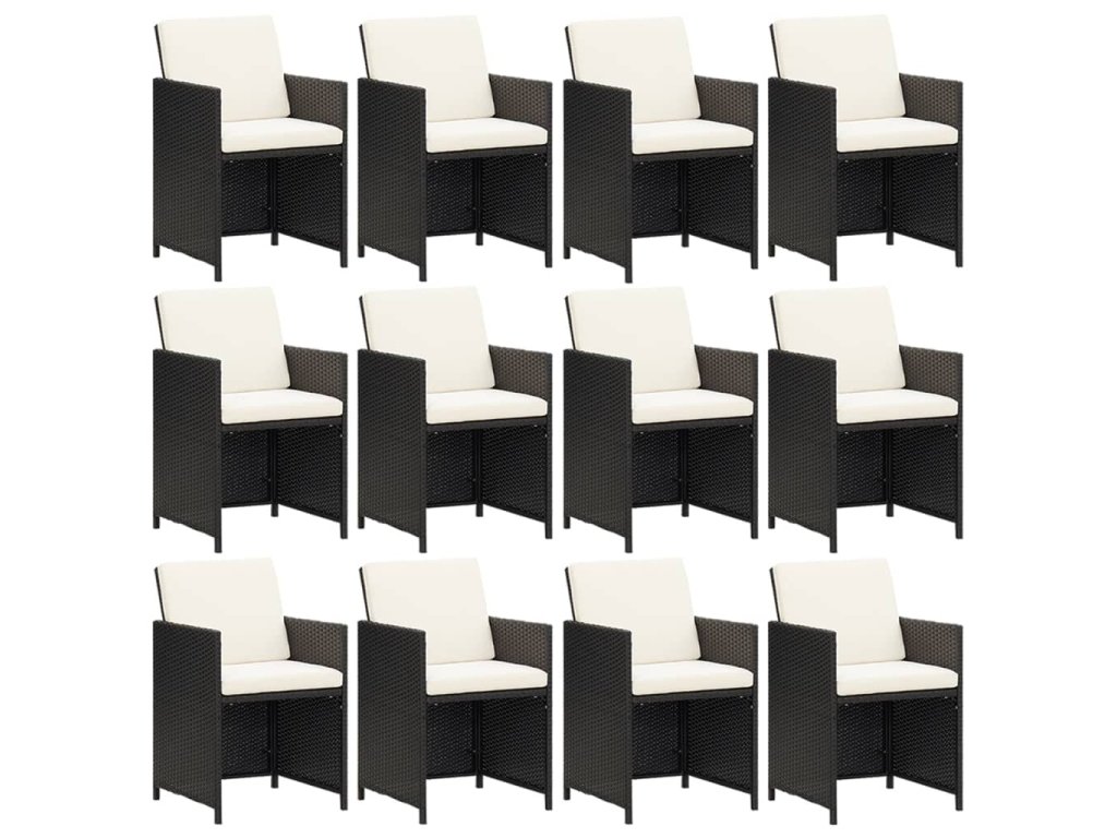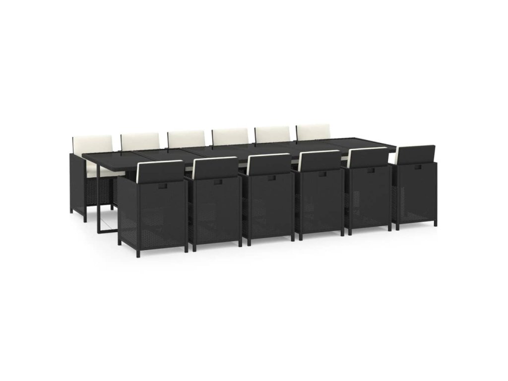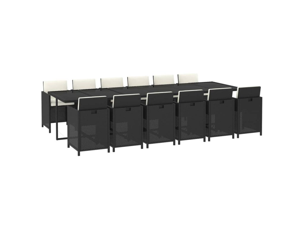 13dílný zahradní jídelní set s poduškami polyratan černý 3095611