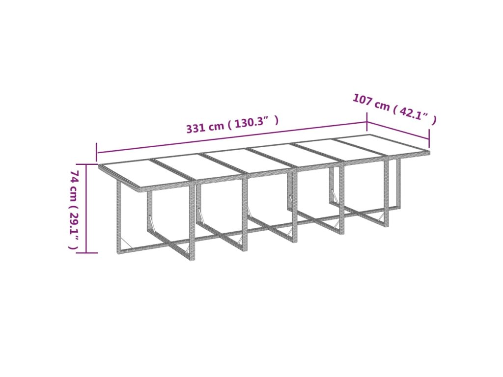 - Rozměry stolu: 331 x 107 x 74 cm (D x Š x V)