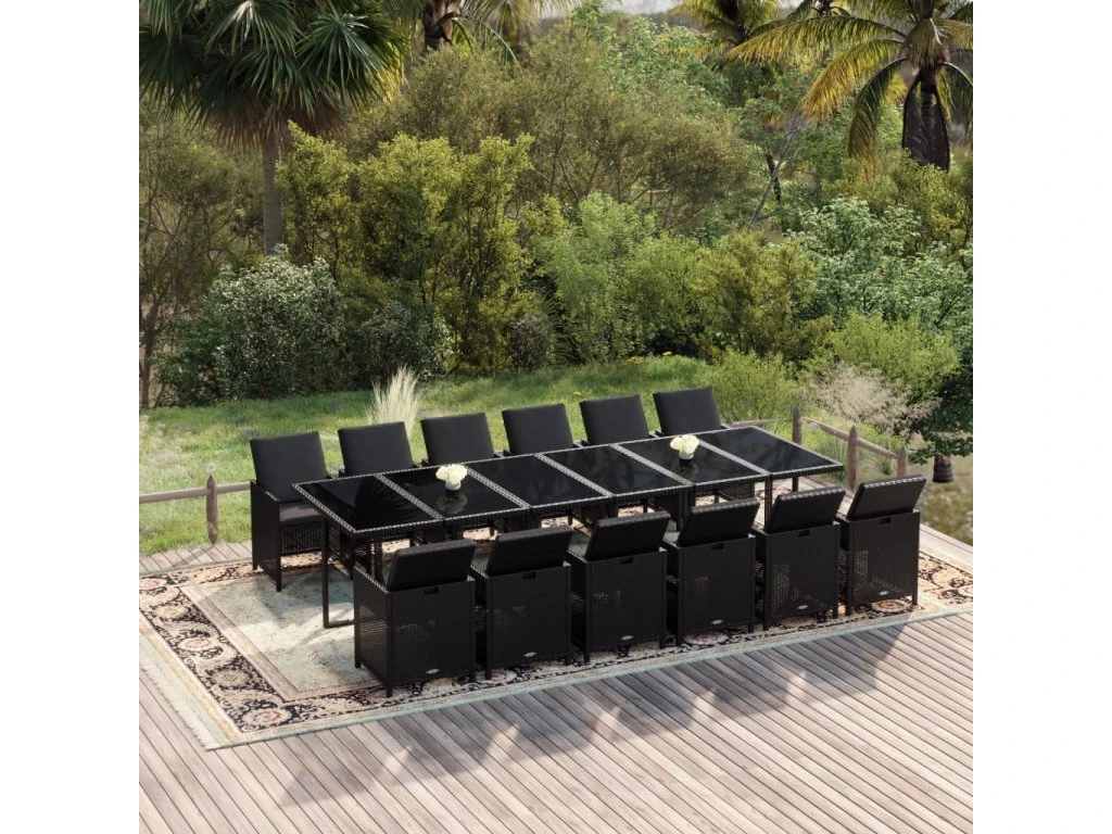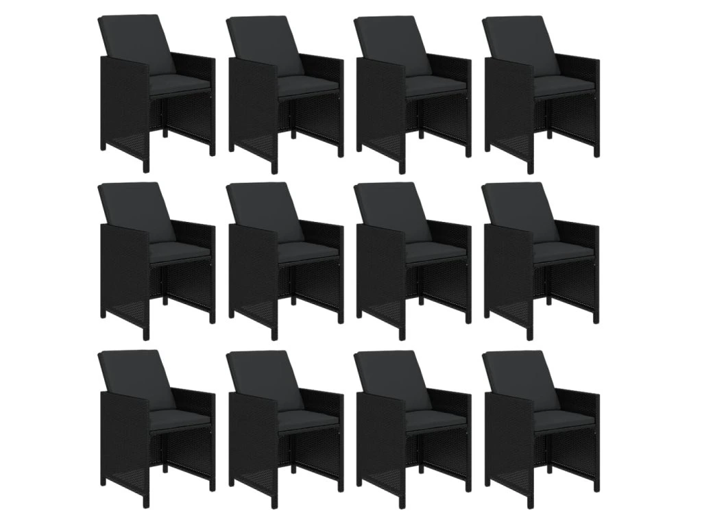13dílný zahradní jídelní set s poduškami polyratan černý 3095612