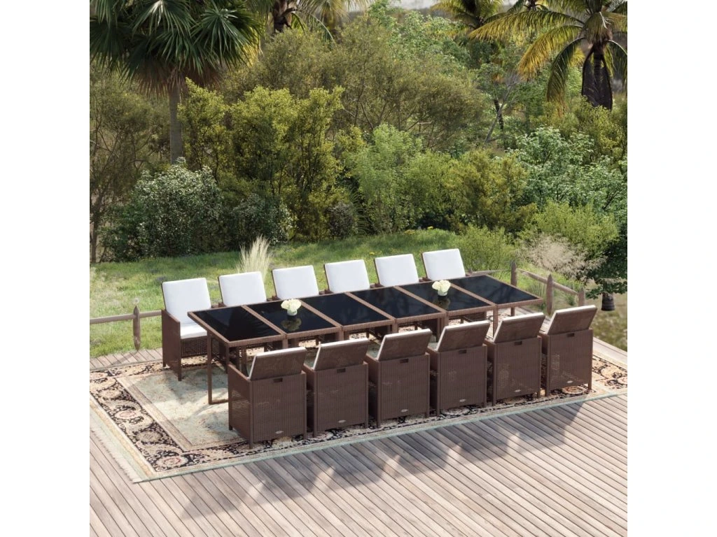 13dílný zahradní jídelní set s poduškami polyratan hnědý 3095620
