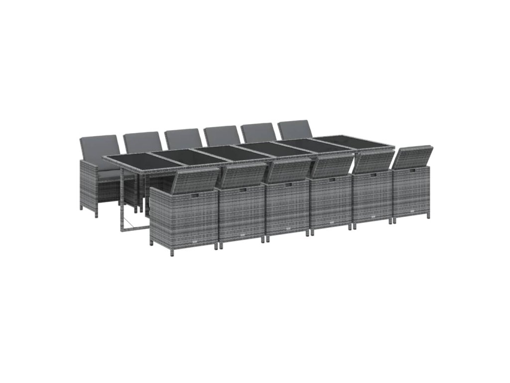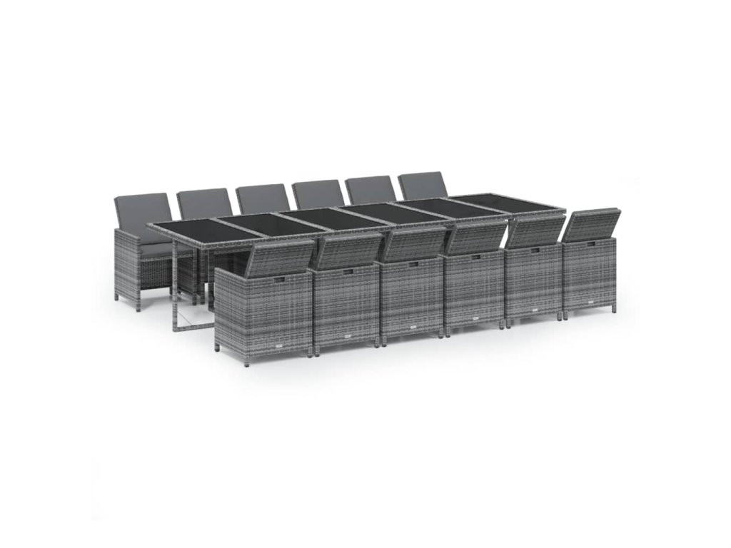 13dílný zahradní jídelní set s poduškami polyratan šedý 3095617