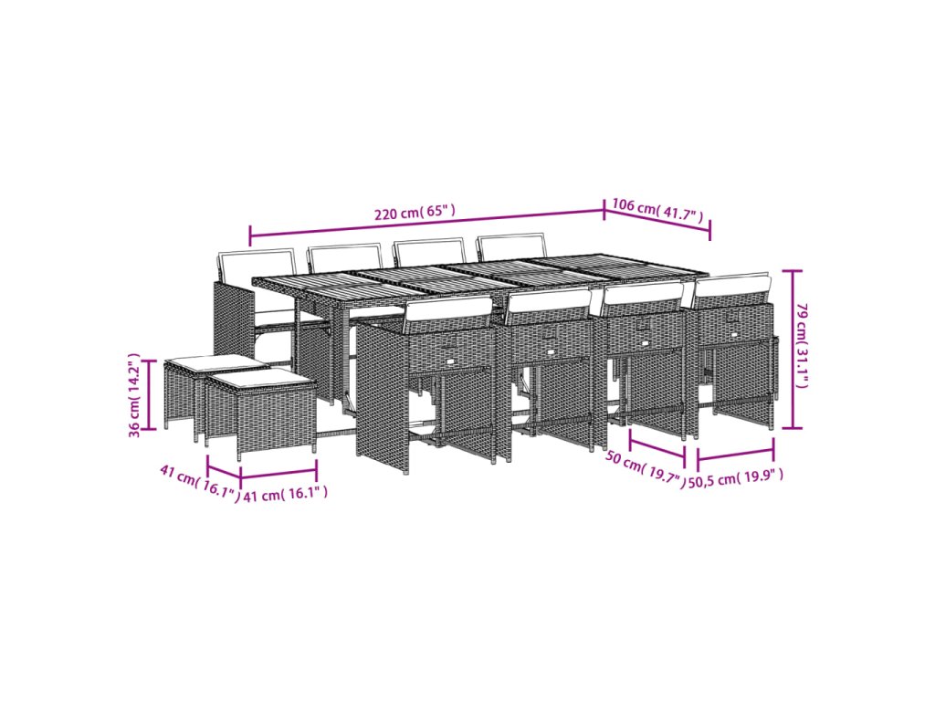 13dílný zahradní jídelní set s poduškami šedý polyratan 3211166