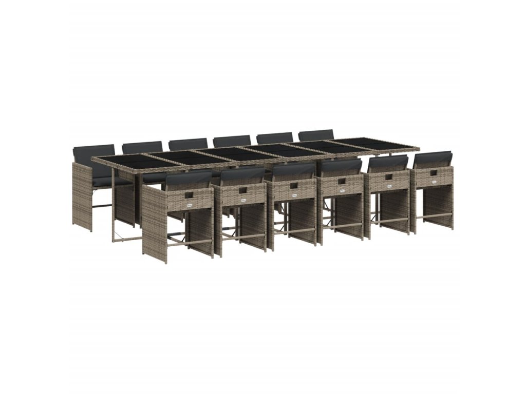 13dílný zahradní jídelní set s poduškami šedý polyratan 3277891
