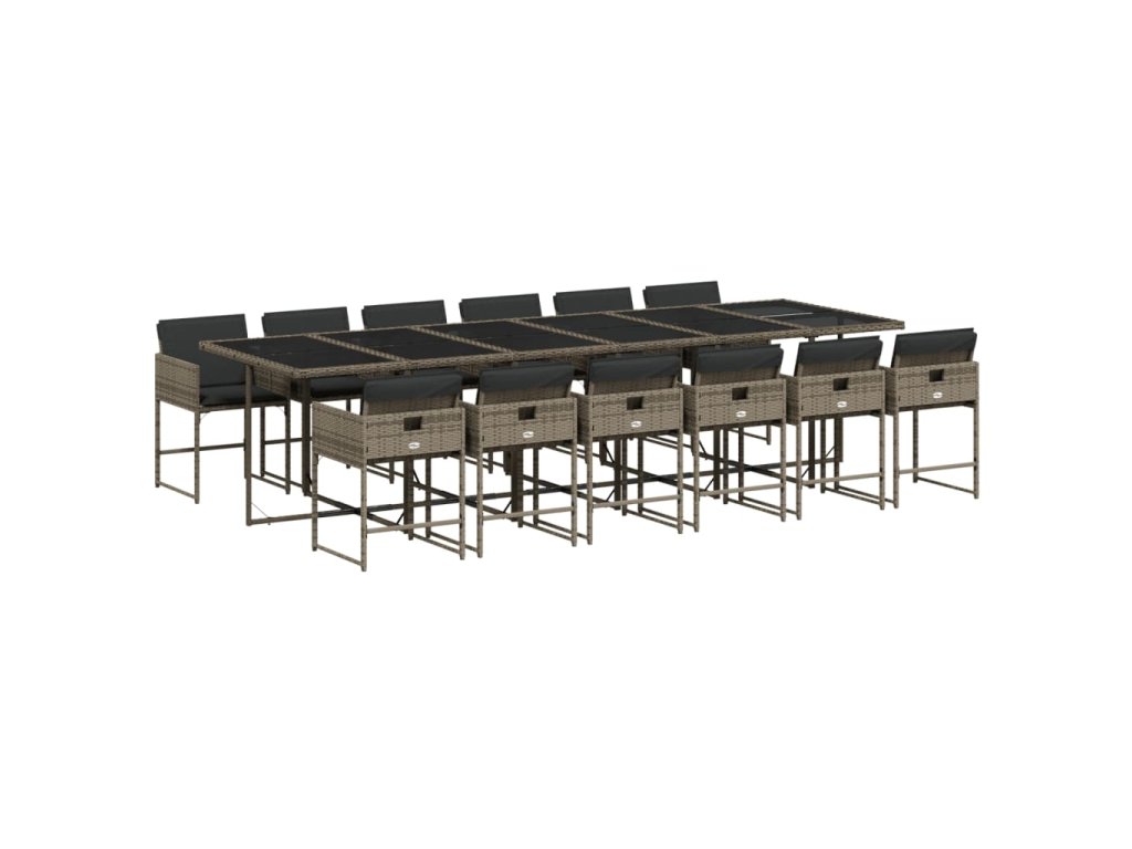 13dílný zahradní jídelní set s poduškami šedý polyratan 3278071