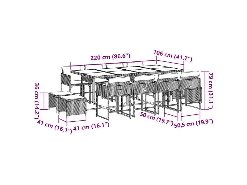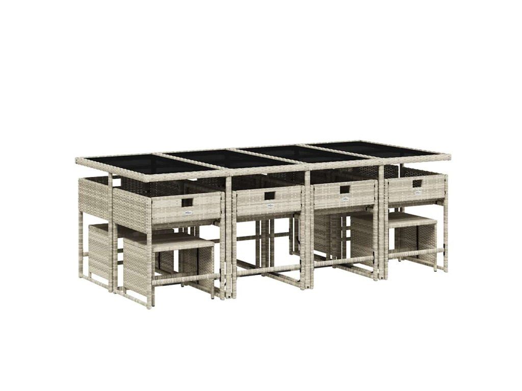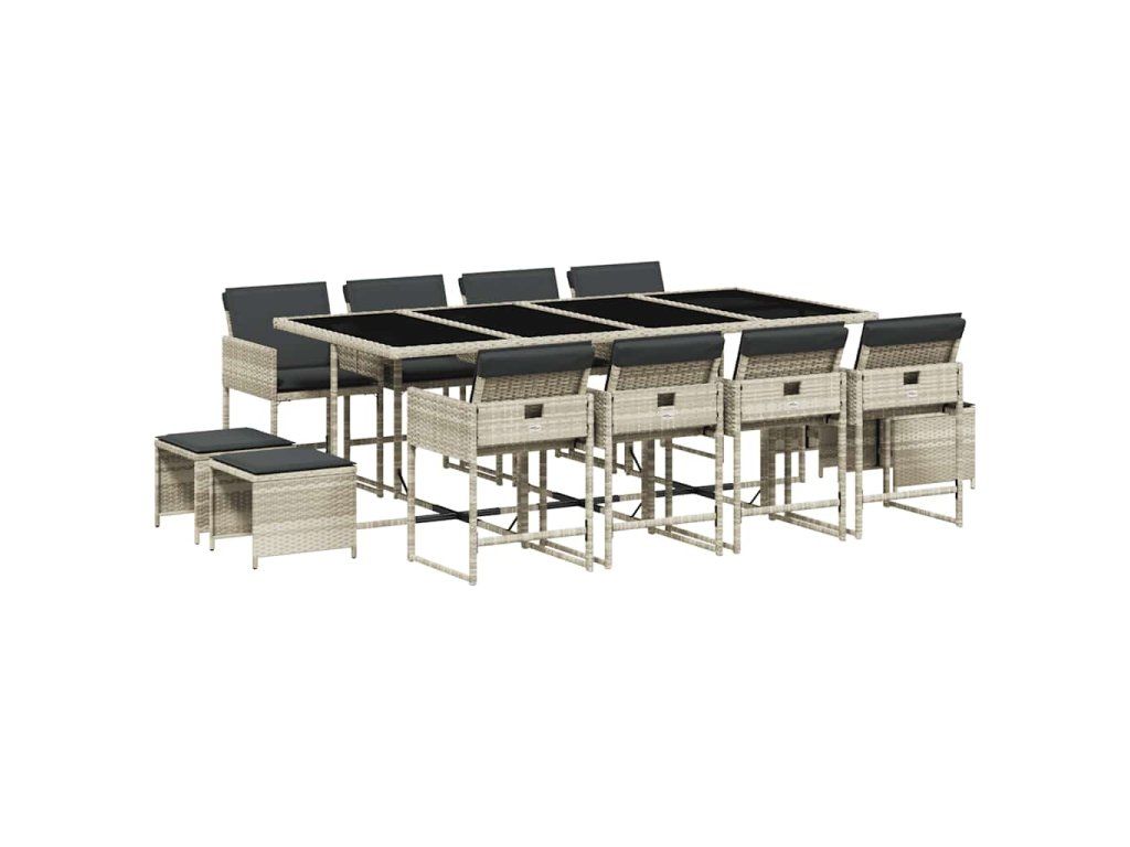 13dílný zahradní jídelní set s poduškami světle šedý polyratan 3211343