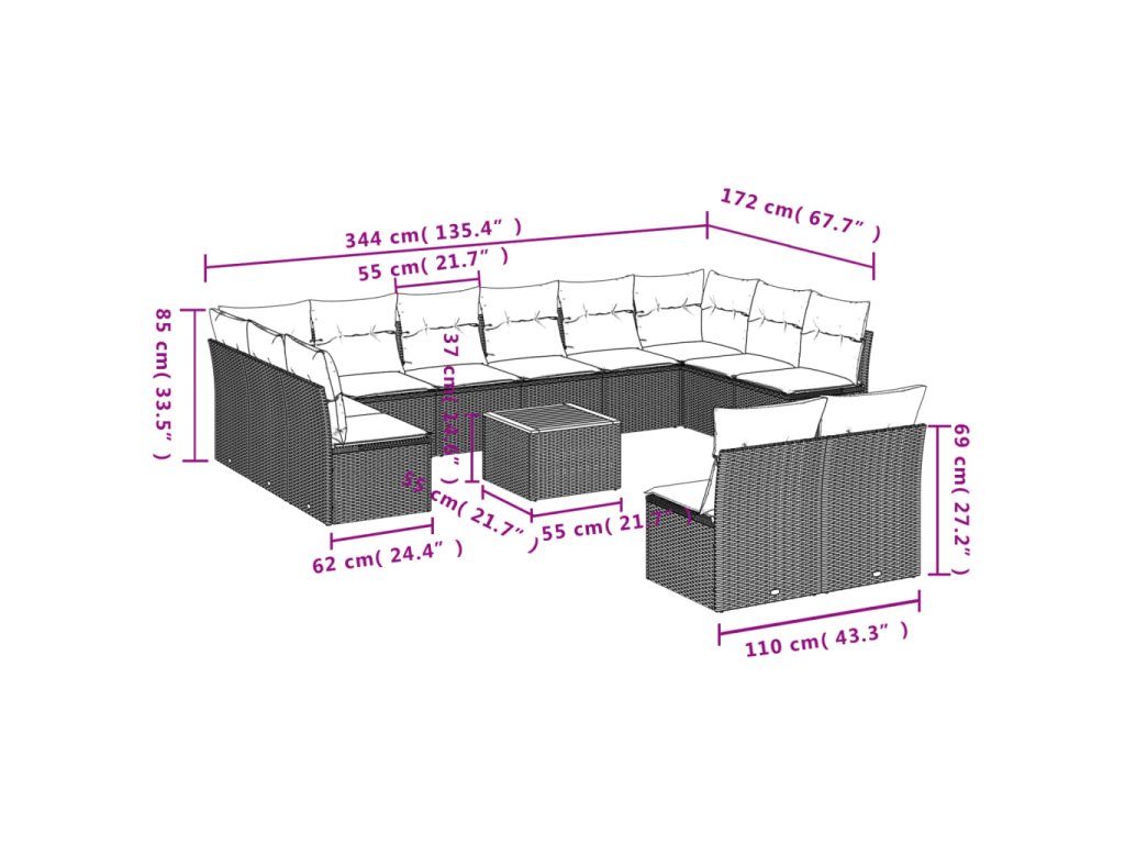 13dílný zahradní sedací souprava s poduškami černý polyratan 3223893