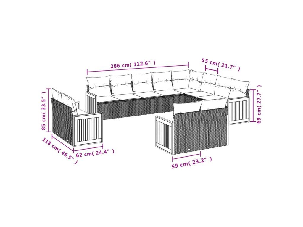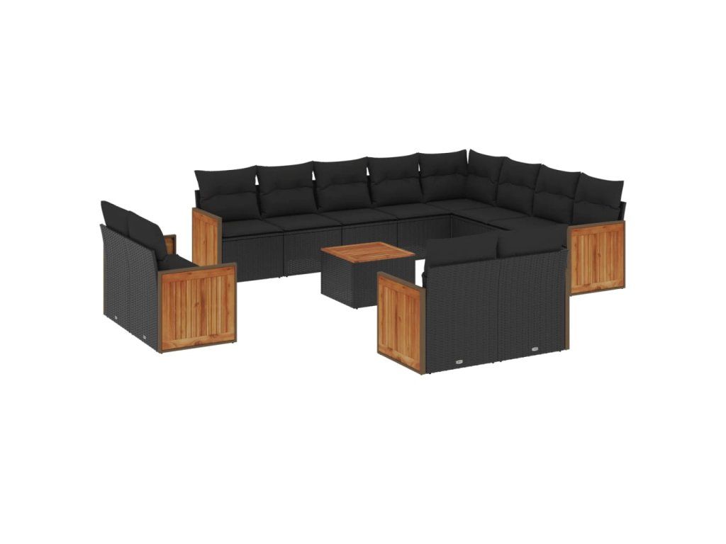 13dílný zahradní sedací souprava s poduškami černý polyratan 3228197