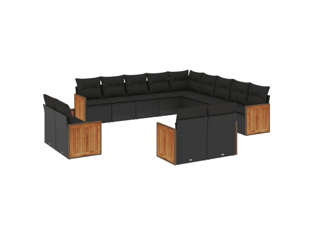 13dílný zahradní sedací souprava s poduškami černý polyratan 3228204