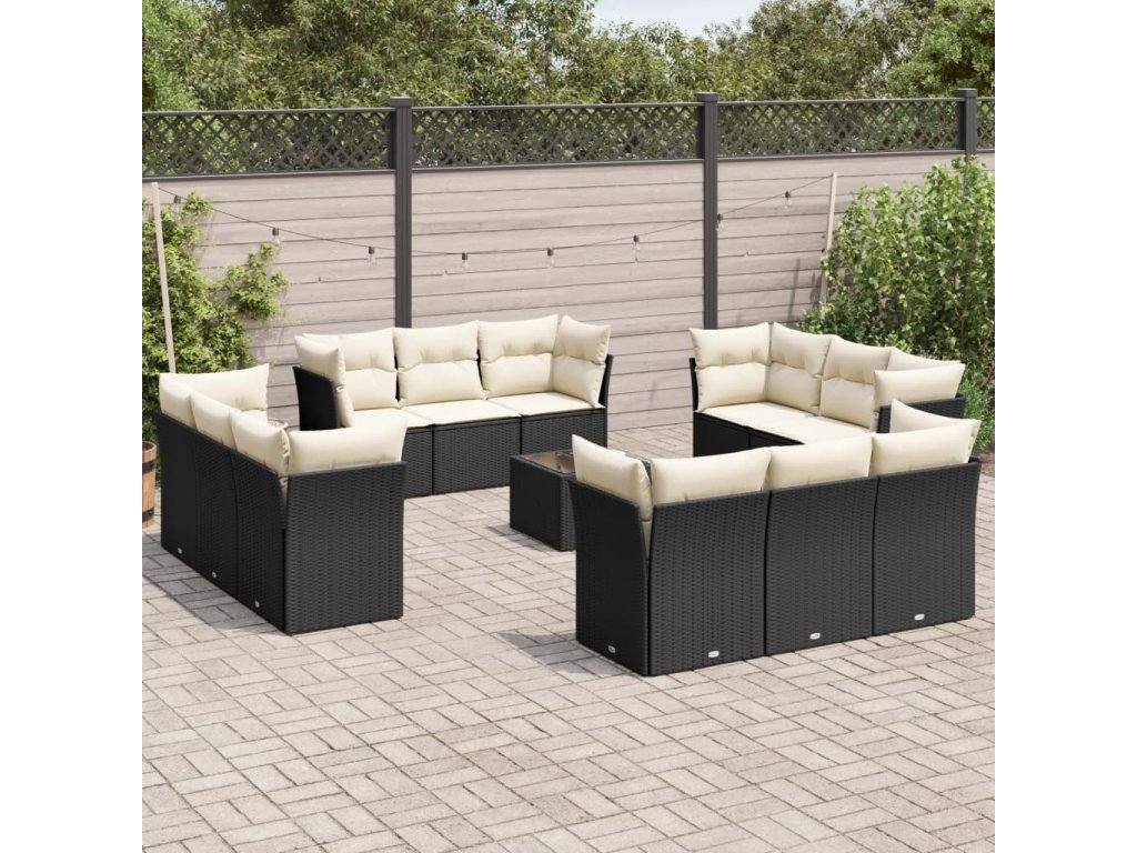 13dílný zahradní sedací souprava s poduškami černý polyratan 3249175