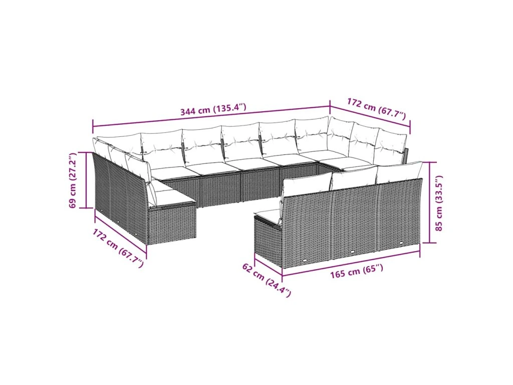 - 13x poduška na sedák s odnímatelným a pratelným potahem