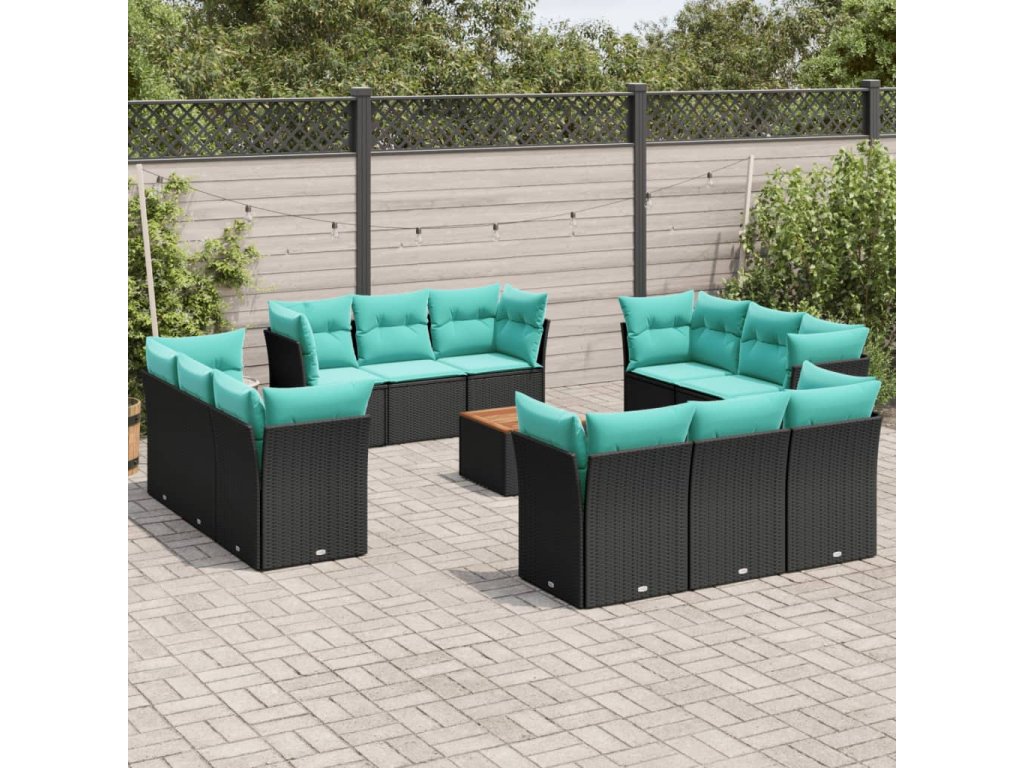 13dílný zahradní sedací souprava s poduškami černý polyratan 3255868