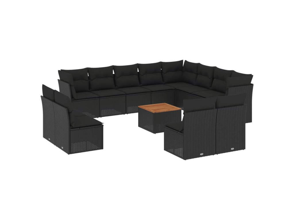 13dílný zahradní sedací souprava s poduškami černý polyratan 3256258