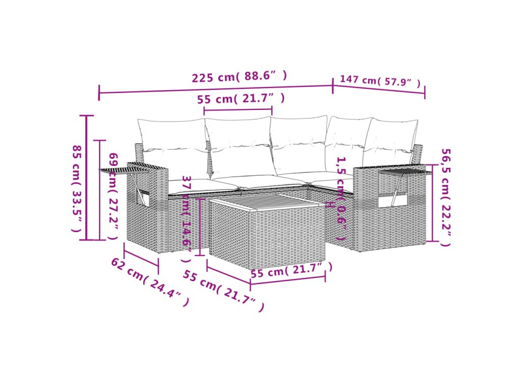 Tato zahradní sedací souprava je dokonalým doplňkem vaší zahrady, terasy nebo dvorku a poskytne vám pohodlné a příjemné místo, kde si můžete povídat s rodinou a přáteli nebo jen tak odpočívat a užívat si pobyt venku.