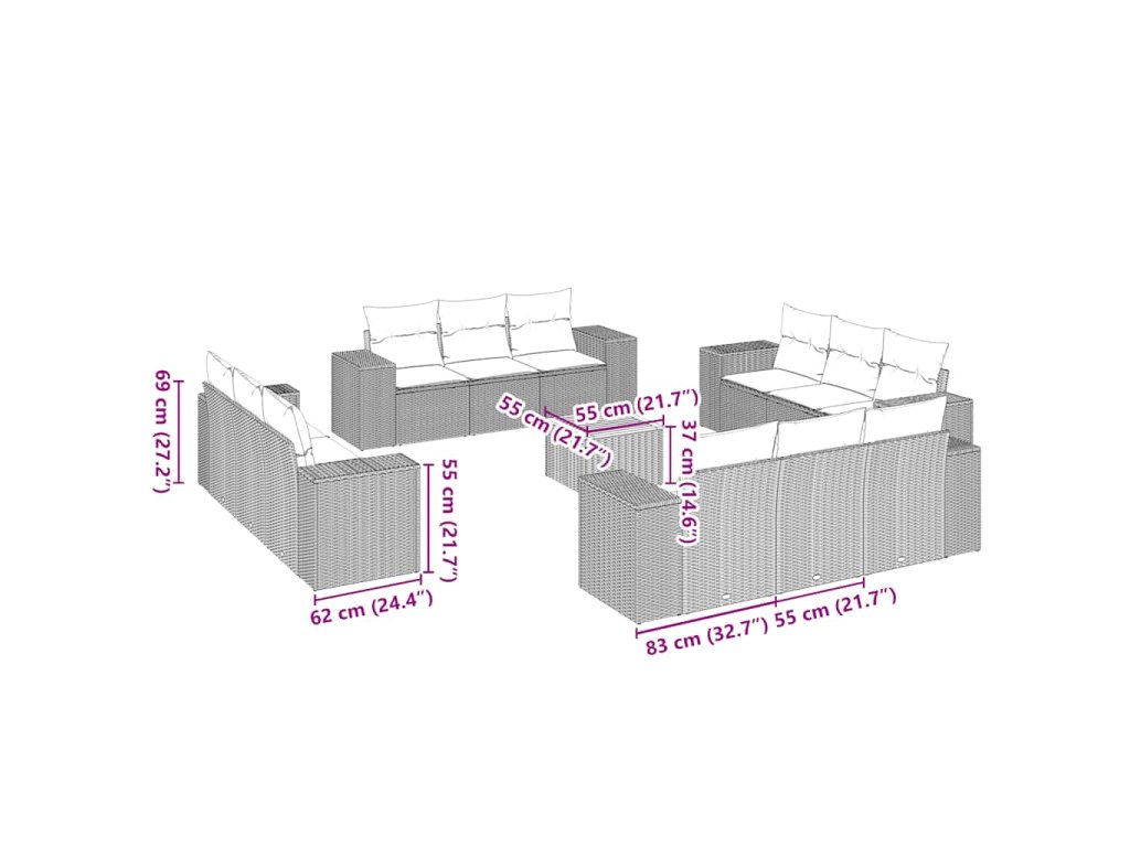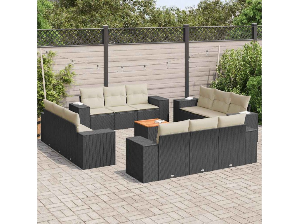 13dílný zahradní sedací souprava s poduškami černý polyratan 3257708