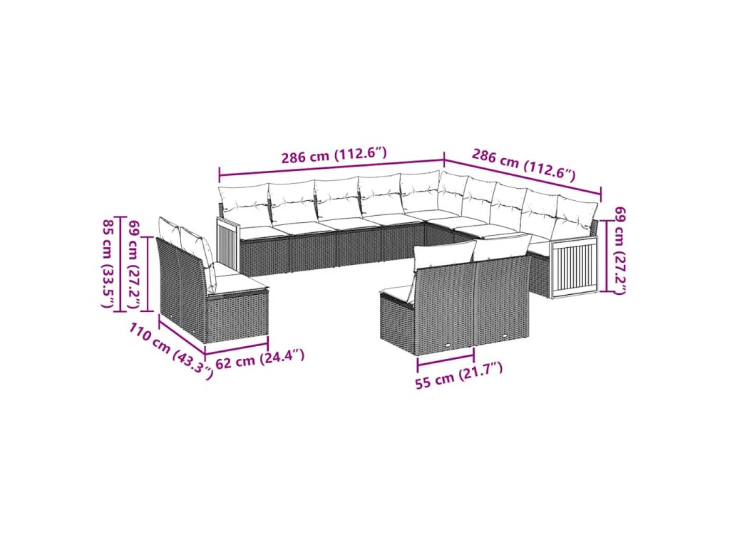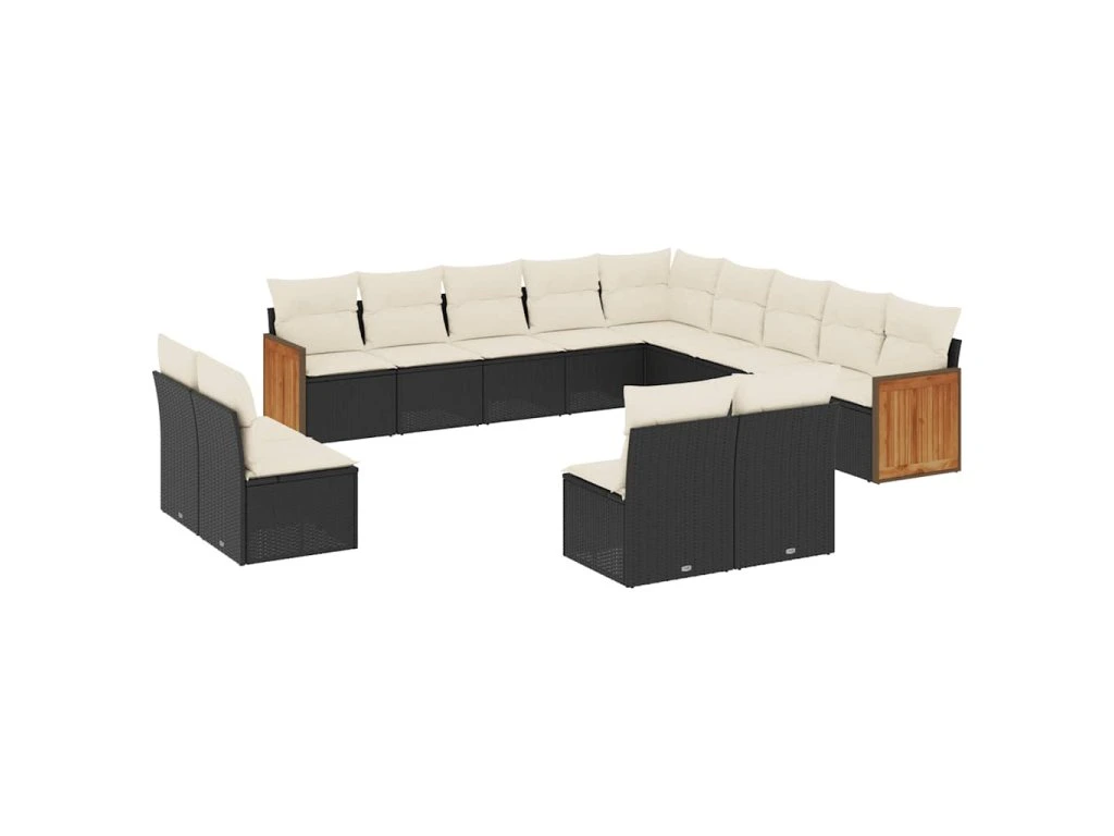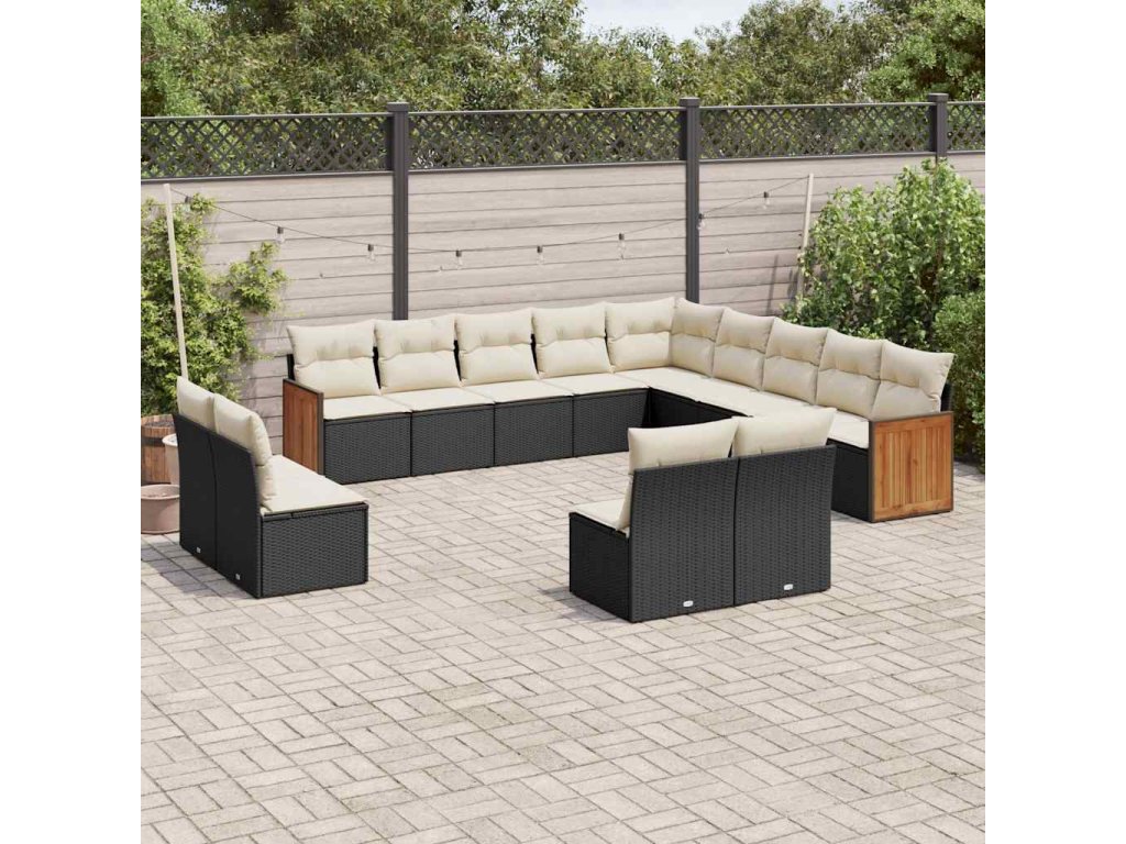 13dílný zahradní sedací souprava s poduškami černý polyratan 3260565