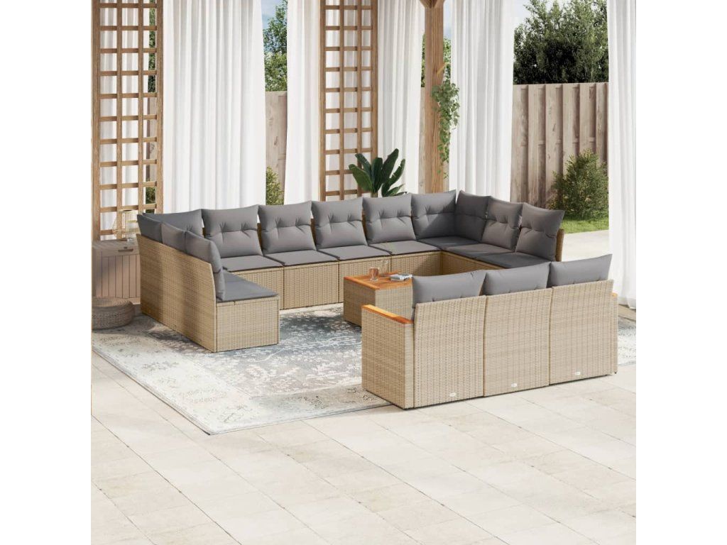 14dílná zahradní sedací souprava a podušky mix béžové polyratan 3226465