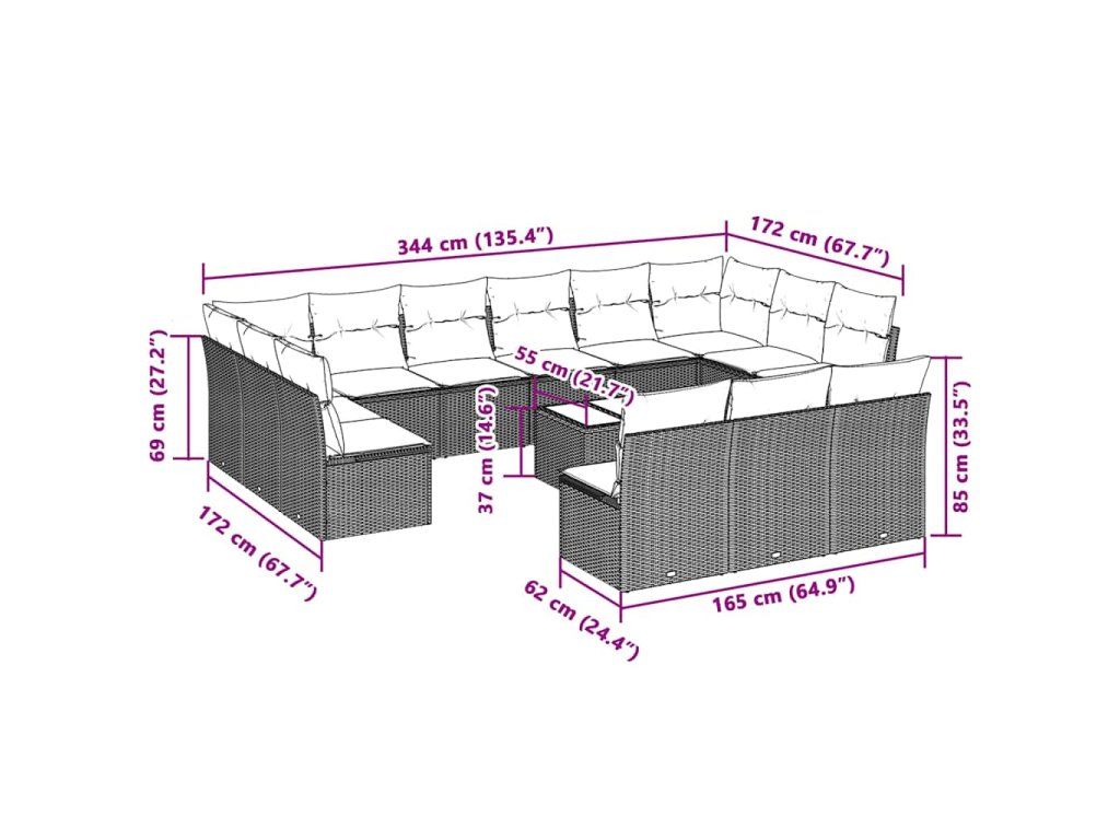 14dílná zahradní sedací souprava podušky světle šedá polyratan 3218402