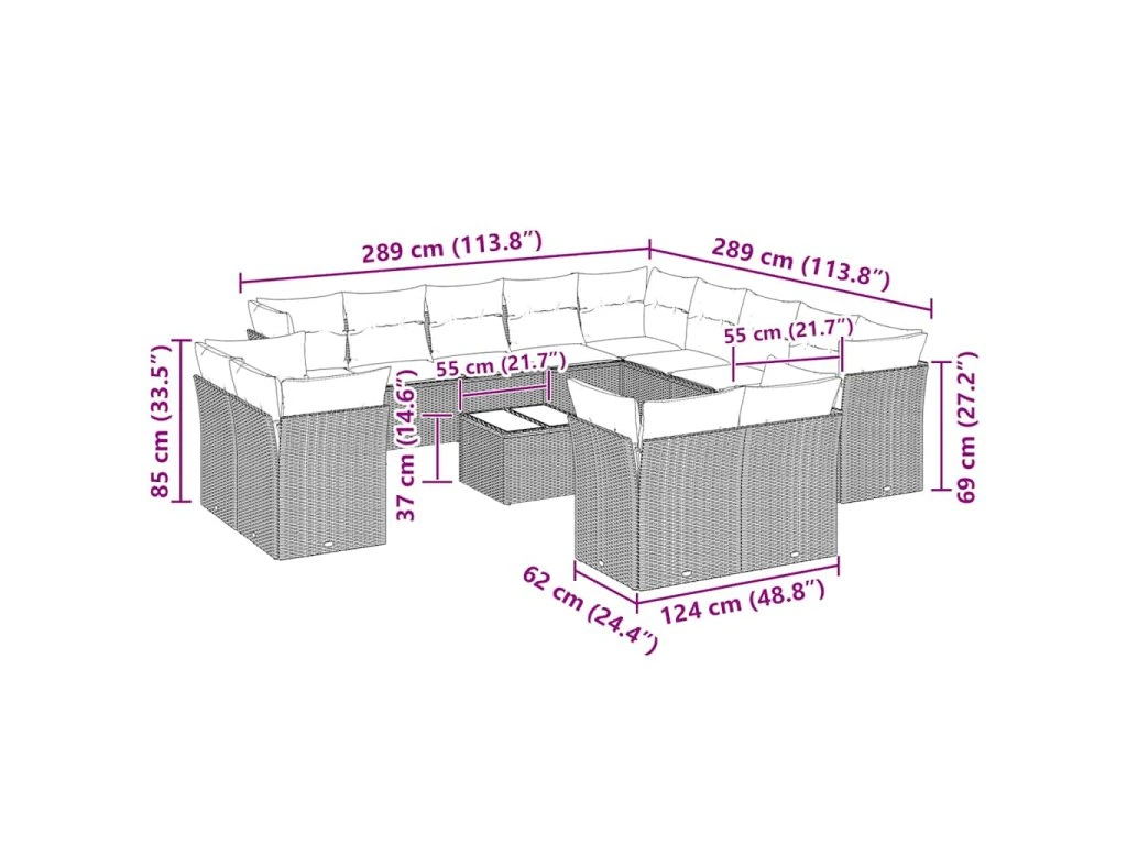 Tato zahradní sedací souprava je dokonalým doplňkem vaší zahrady, terasy nebo dvorku a poskytne vám pohodlné a příjemné místo, kde si můžete povídat s rodinou a přáteli nebo jen tak odpočívat a užívat si pobyt venku.