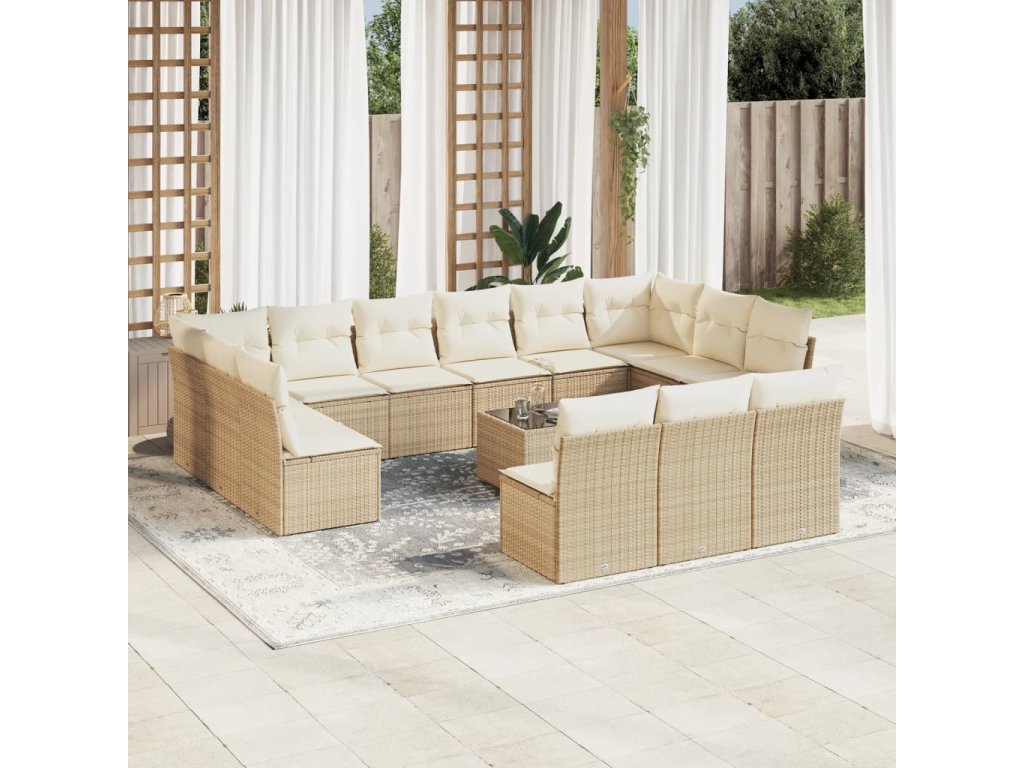 14dílná zahradní sedací souprava s poduškami béžová polyratan 3218398
