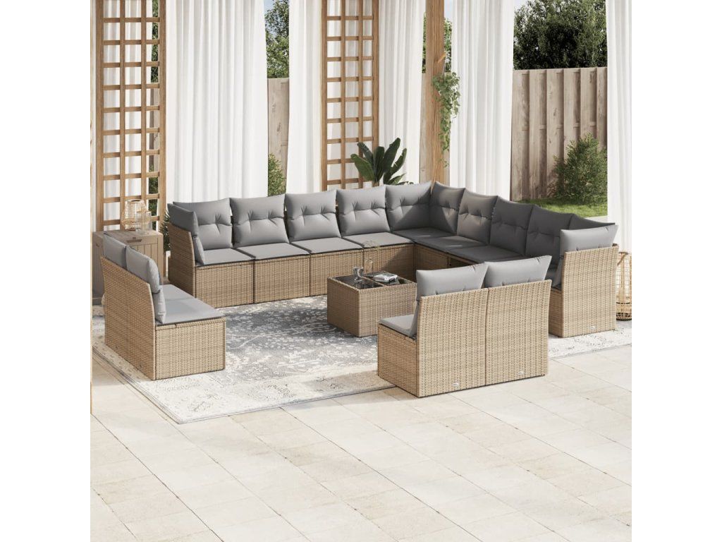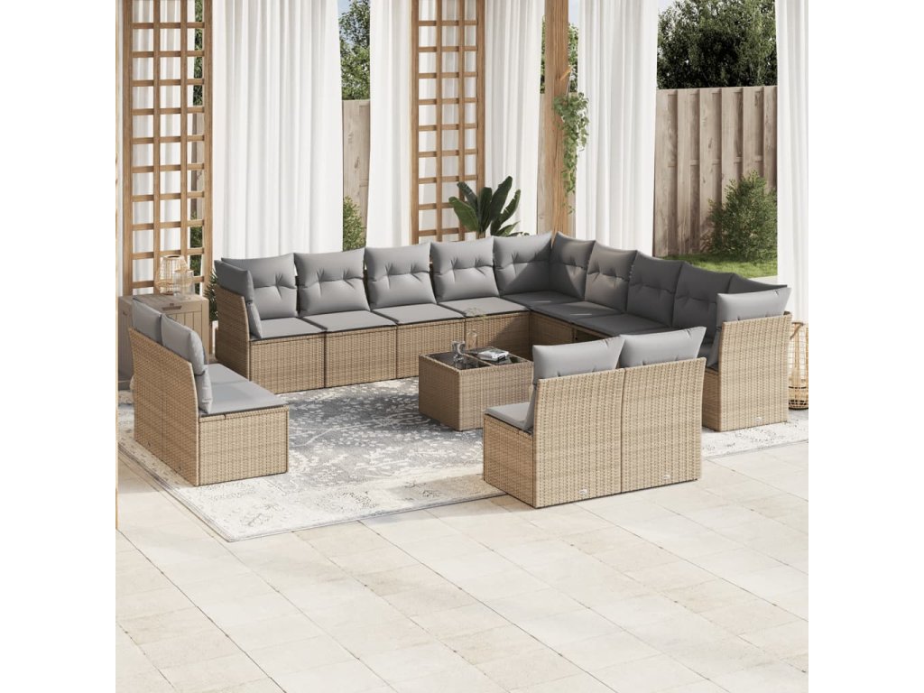 14dílná zahradní sedací souprava s poduškami béžová polyratan 3218499